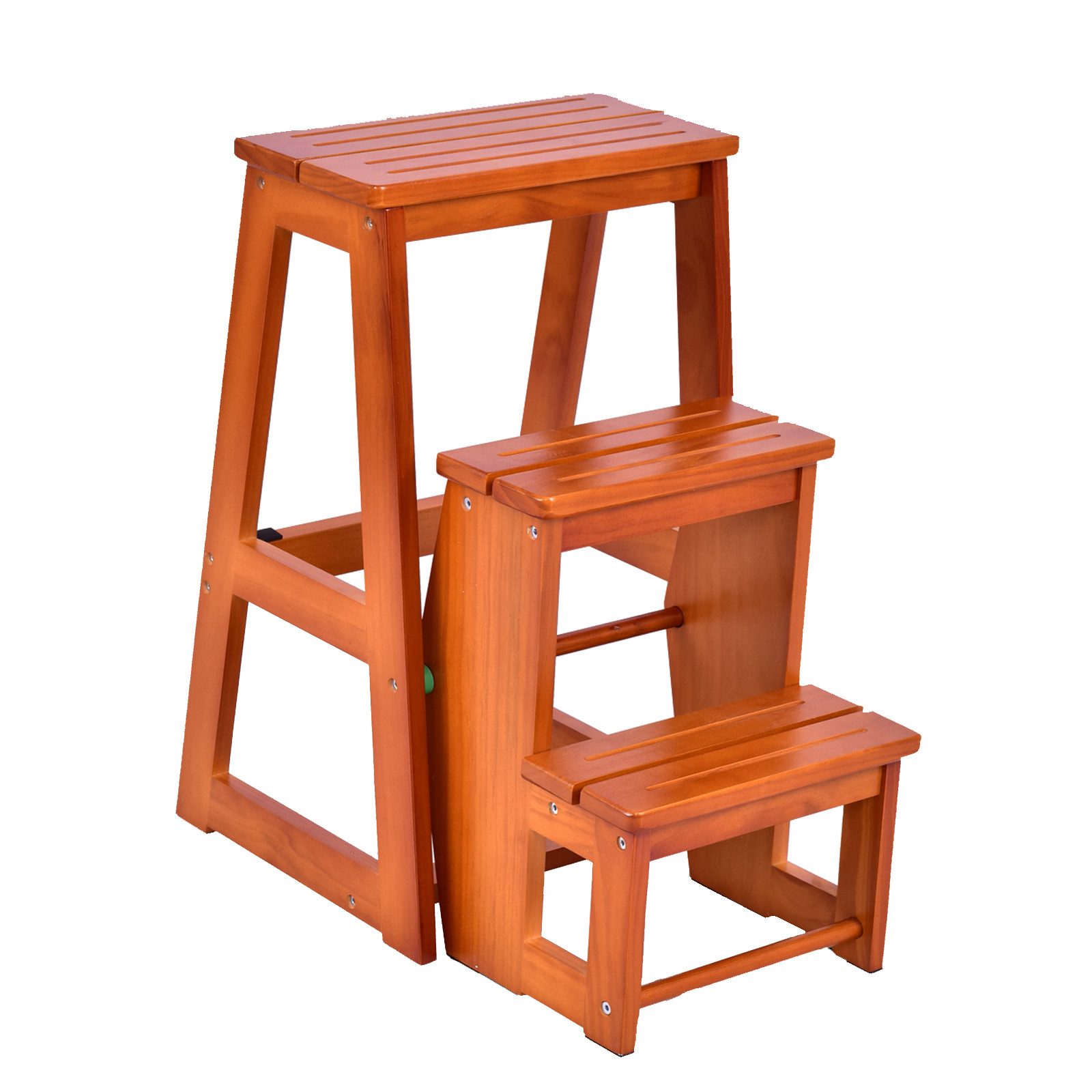 Das ist eine Hockerleiter. Die Farbe dieser Hockerleiter ist braun und sehr schön. Dieser Leiterstuhl ist faltbar. Die Размер des Hockers nach dem Falten ist klein und spart viel Platz. Der zusammengeklappte Hocker kann als Couchtisch oder Hocker verwendet werden. Dieser Leiterstuhl ist nach dem Entfalten groß und bietet Platz für viele Gegenstände. Der aufgeklappte Hocker kann als Bücherregal, Blumenständer oder Treppe verwendet werden. Dieser Tritthocker ist sehr praktisch.