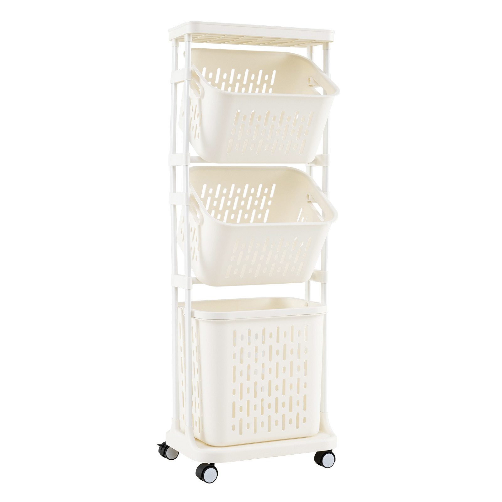 Maximieren Sie die Organisation Ihrer Schmutzwäsche mit unserem 3-stufigen Wäschewagen! Geräumig, mit einer großen oberen Ablage, 2 kleinen Körben und einem großen Wäschekorb ausgestattet, eignet er sich ideal zum effizienten Сортировка von Handtüchern, Bettwäsche und anderer Wäsche. Mit seinen 4 multidirektionalen Rädern und stabilen Bremsen lässt sich der Wagen mühelos bewegen und überall sicher fixieren. Er ist komfortabel gestaltet, mit geneigten Körben für leichten Zugriff, einem praktischen Griff und einem belüfteten Design für bessere Luftzirkulation. Robusterweise aus Metall und hochwertigem PP-Kunststoff gefertigt, ist er langlebig und dank abgerundeter Ecken sicher in der Handhabung.