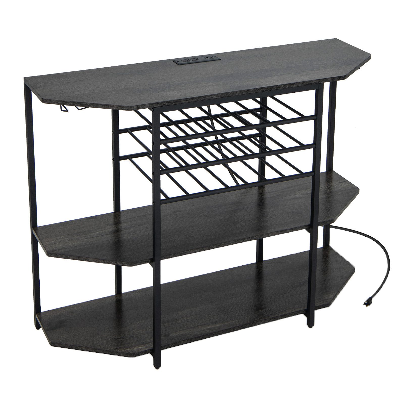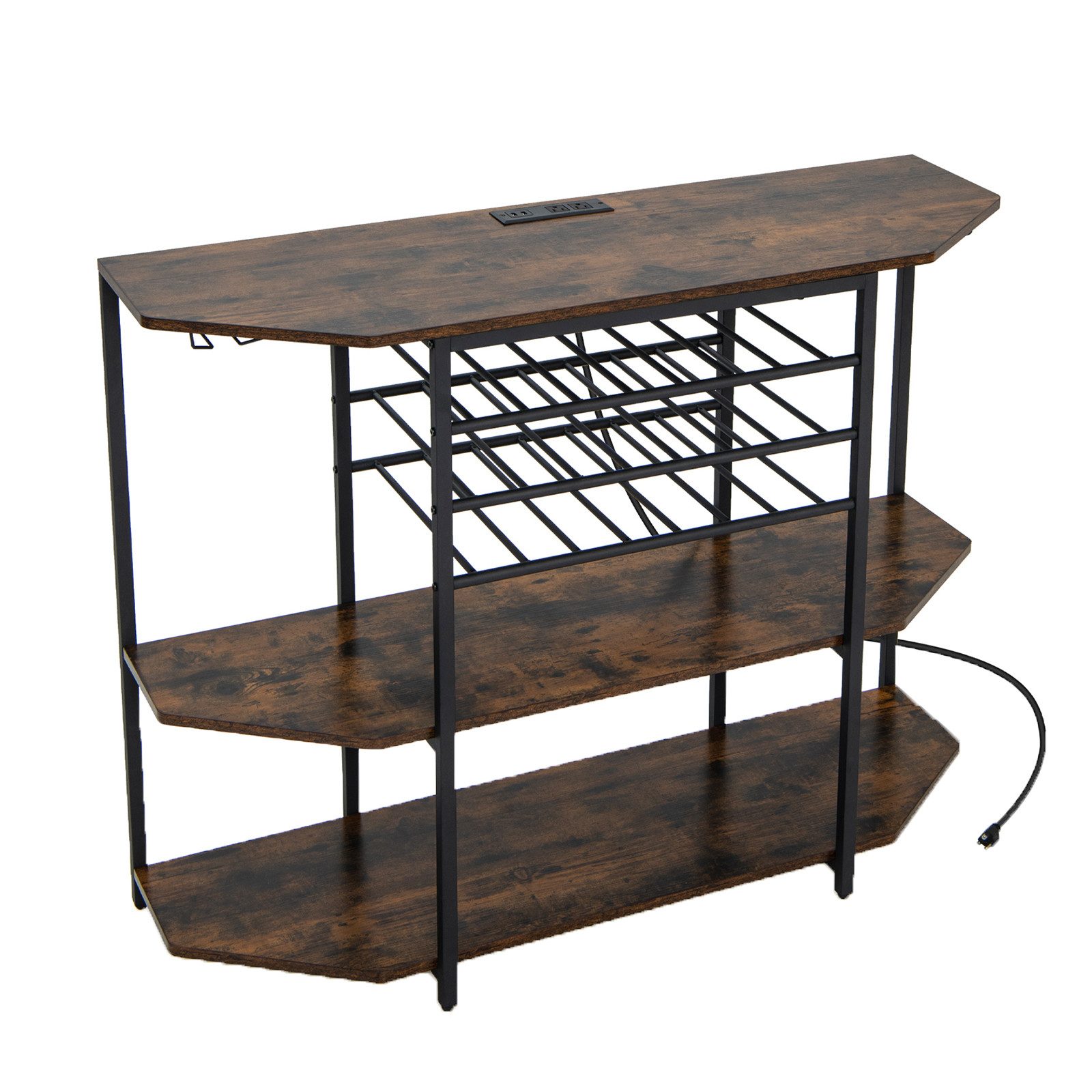 Unser vielseitiges Weinregal bietet eine praktische Lösung für begrenzte Ladestationen. Es verfügt über zwei AC-Steckdosen, zwei USB-Anschlüsse und ein großzügig bemessenes 150cm Netzkabel zum Aufladen von Geräten wie Kaffeemaschinen, Wasserkochern oder Toastern. Zudem bietet das Regal Stauraum mit einem 3-stufigen Weinflaschenregal, 4 Reihen Weinglashalterung und drei offenen Trennwänden für Flaschen, Gläser, Lebensmittel und Küchenutensilien. Die robuste Konstruktion aus hochbelastbaren Metallrohren und verdicktem Holzwerkstoff gewährleistet Tragfähigkeit und Langlebigkeit. Der Vintage-Industriestil mit schwarzen Metallrahmen und vintage-farbenen Paneelen passt perfekt in Küche, Esszimmer oder Wohnzimmer. Dank der einfachen Montageanleitung und glatten, pflegeleichten Oberflächen ist das Weinregal einfach zu installieren und zu pflegen.