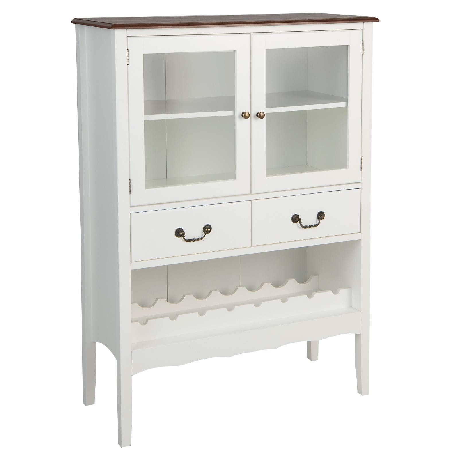 Möchten Sie eine Vitrine, um Ihre Weinsammlung perfekt zu präsentieren? Möchten Sie einen Schrank, in dem Sie all Ihre Küchenartikel problemlos aufbewahren können? Mit unserem Weinschrank bekommen Sie alles, was Sie brauchen! Die große Tischplatte aus dicken MDF-Platten und das offene Weinregal an der Unterseite bieten den perfekten Platz, um Ihren Wein zu präsentieren. Und das geschlossene Staufach mit Glastüren und zwei Schubladen kann zur Aufbewahrung wichtiger Gegenstände oder persönlicher Dinge genutzt werden. Gleichzeitig sorgen die stabilen MDF- und Kiefernholzplatten dafür, dass Ihre Gegenstände oben sicher stehen, und die Kippsicherung an der Rückseite des Weinschranks erhöht die Stabilität des Weinschranks und hält ihn an seinem Platz. Dieser Weinschrank ist nicht nur praktisch, sondern hat auch ein elegantes und schönes Aussehen, so dass er sich perfekt in jeden Einrichtungsstil einfügt, daher können Sie diesen Weinkühler je nach Ihren Bedürfnissen in verschiedenen Räumen aufstellen.
