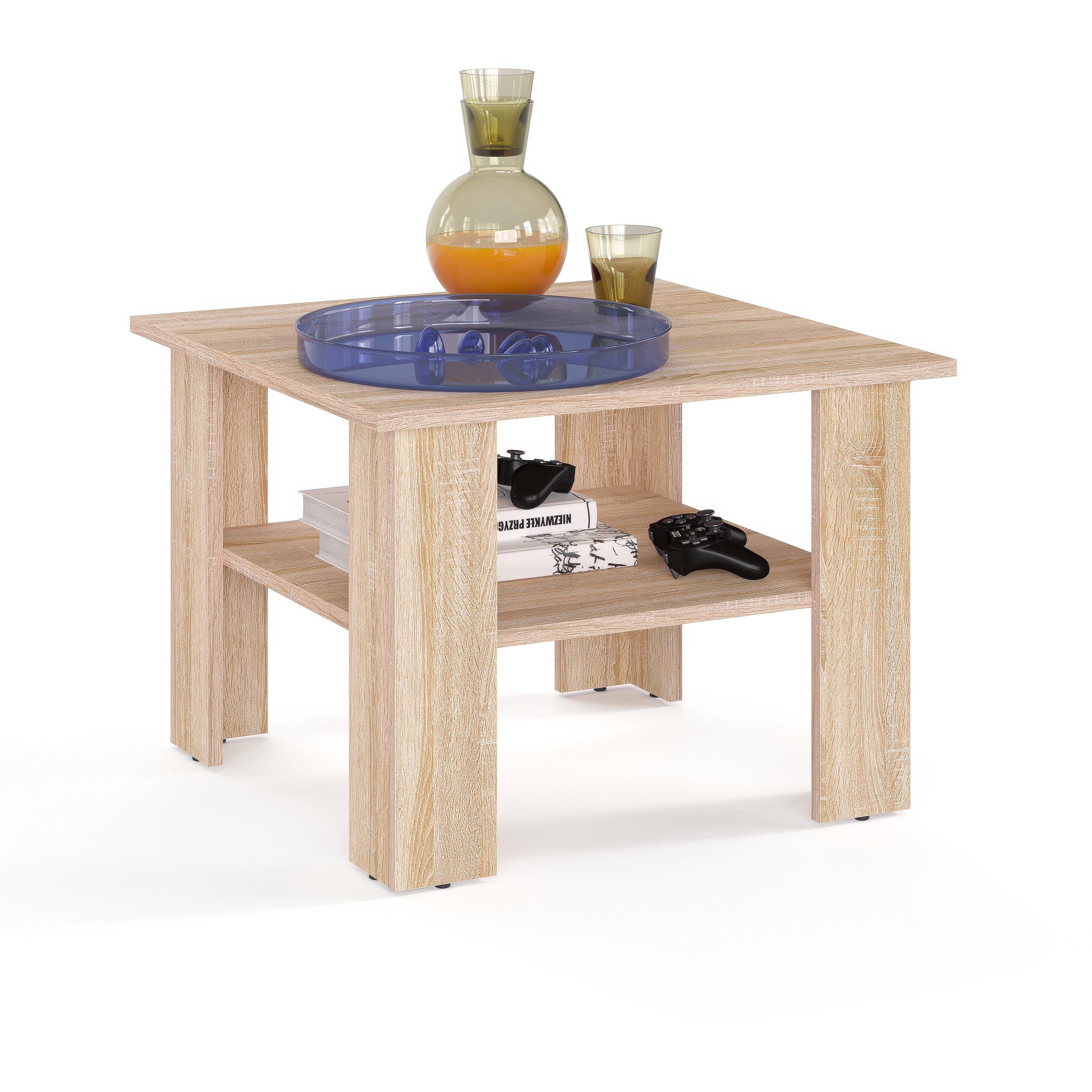 Couchtisch quadratisch Der Couchtisch VIENNA im modernen Design passt zu Ihrem Wohnzimmerdekor und bietet Platz für alles, was Sie brauchen. Das ist ein perfekter Platz für Ihre TV-Fernbedienung, Telefon, Gadgets und Bücher, die Sie auf einem Regal konsolidiert aufbewahren können, damit nicht mehr zu verlieren. Couchtisch mit Stauraum Kunststoffbeine schützen den Boden, da sie keinen direkten Bodenkontakt haben. Maße Kaffeetisch 60x60x43 cm (Breite x Tiefe x Höhe).