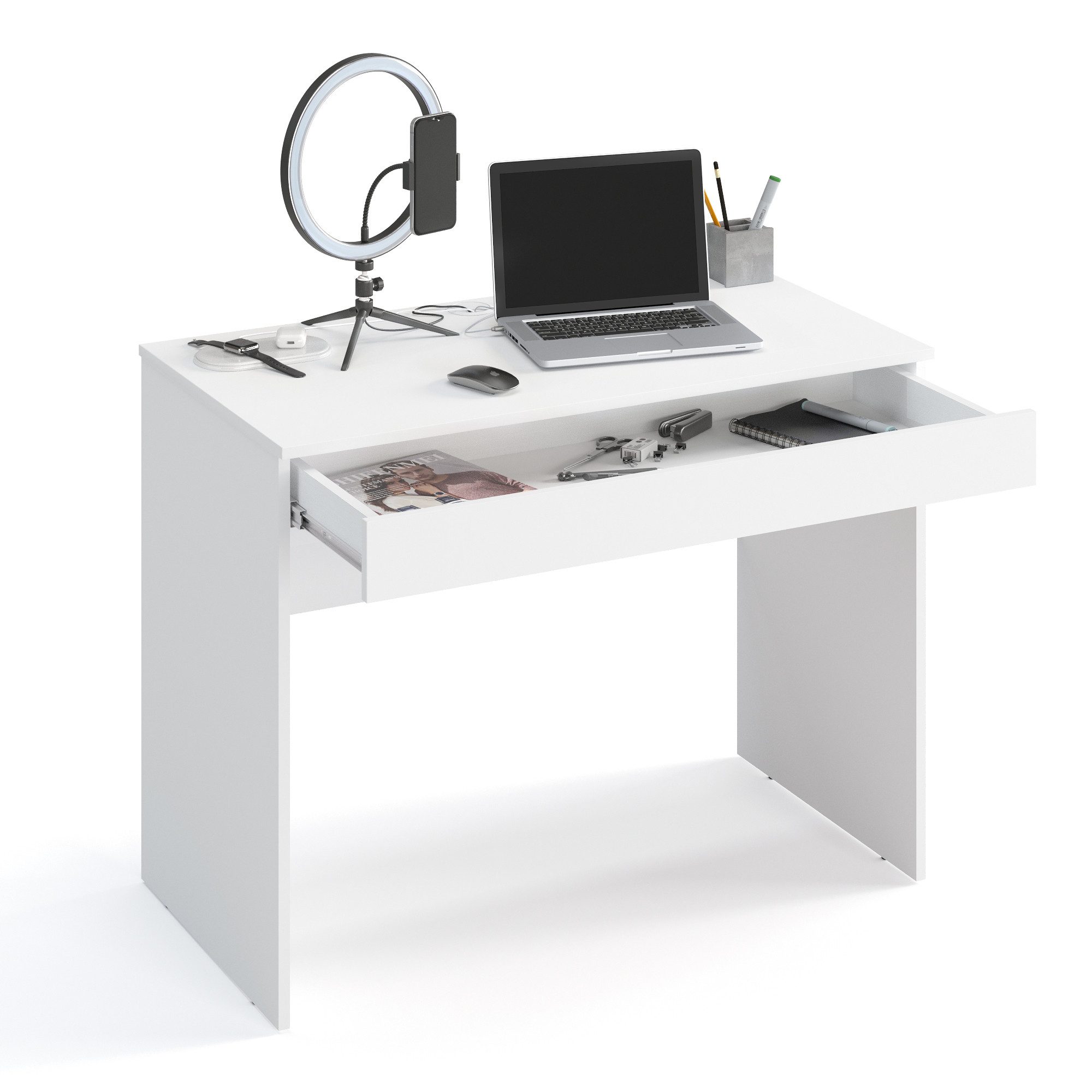 Universelle Maße: Der Mini Schreibtisch mit 100 cm x 53 cm x 76 cm (B x T x H) bietet komfortablen Arbeitsraum sowohl für Erwachsene als auch für Kinder