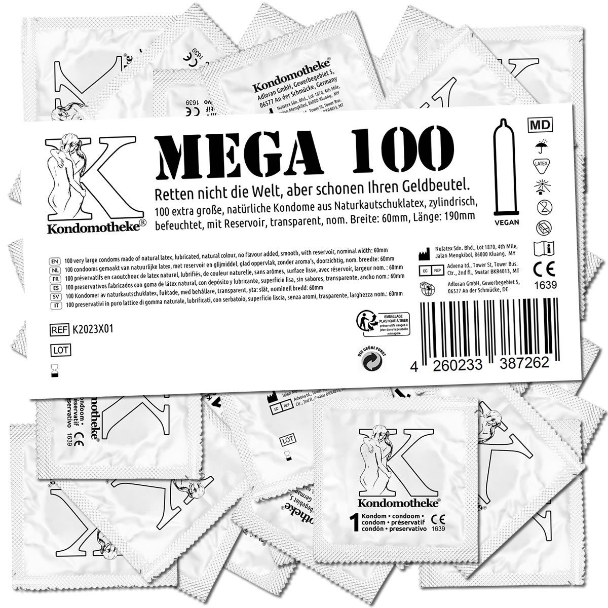 Hinweise | Kondome aus Naturkautschuk-Latex sollten nicht von Personen verwendet werden, die eine Всеrgie gegen Latex haben oder deren Haut empfindlich auf den Kontakt mit Latex reagiert. Kondome sollten kühl, trocken und vor Hitze sowie direkter Sonneneinstrahlung geschützt aufbewahrt werden. Nach dem auf der Umverpackung oder der Siegelfolie angegebenen Datum sollten Sie das Kondom nicht mehr benutzen. Kein Verhütungsmittel kann einen 100%igen Schutz gegen die Ansteckung mit sexuell übertragbaren Krankheiten oder vor Empfängnis bieten. Gebrauchte Kondome gehören in den Abfall, nicht in die Toilette oder in die Landschaft. Wenn Sie Gleitmittel benutzen möchten, achten Sie darauf, nur kondomgeeignete Mittel zu benutzen., Achtung: Medizinprodukt Achtung: Bedienungsanleitung lesen Achtung: Enthält Latex Achtung: Keiner direkten Sonneneinstrahlung aussetzen Achtung: Nicht benutzen, wenn die Verpackung beschädigt ist Achtung: Vor Feuchtigkeit schützen Achtung: Zur einmaligen Verwendung |