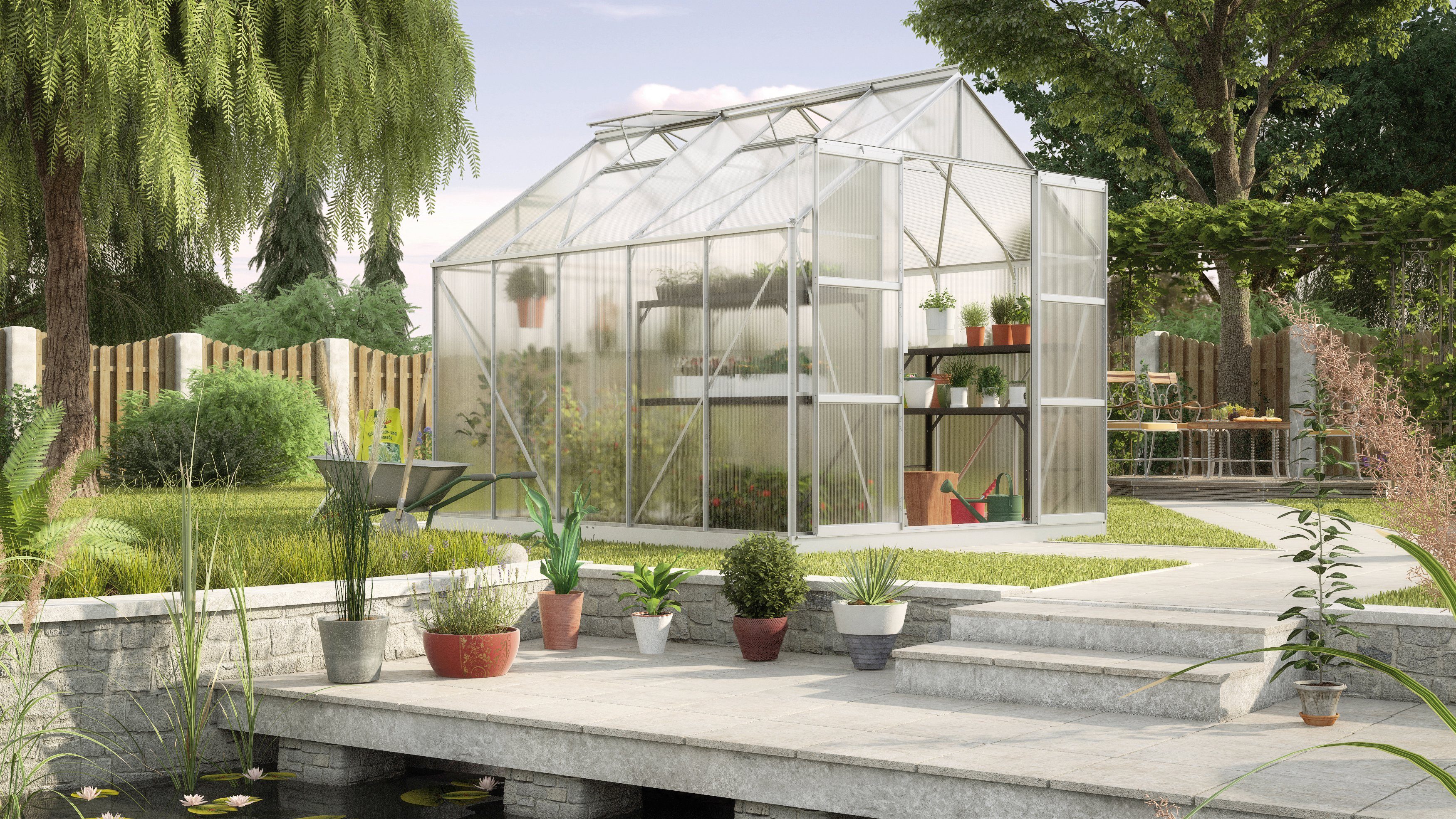 Ein schönes Zuhause für kräftige Pflanzen und solche, die es mal werden wollen: Das Gewächshaus »Titania 8300« von KONIFERA bietet auf einer Grundfläche von 8,3 m² eine optimale Versorgung mit Sonnenlicht und beste Bedingungen für schnelles Wachstum. Vier Dachfenster sorgen für die wichtige Be- und Entlüftung, eine Doppelschiebetür für leichten Zugang. Freuen Sie sich auf knackiges Gemüse und eine bunte Blütenpracht aus eigener Aufzucht – so macht das Gärtnern doppelt Spaß!
