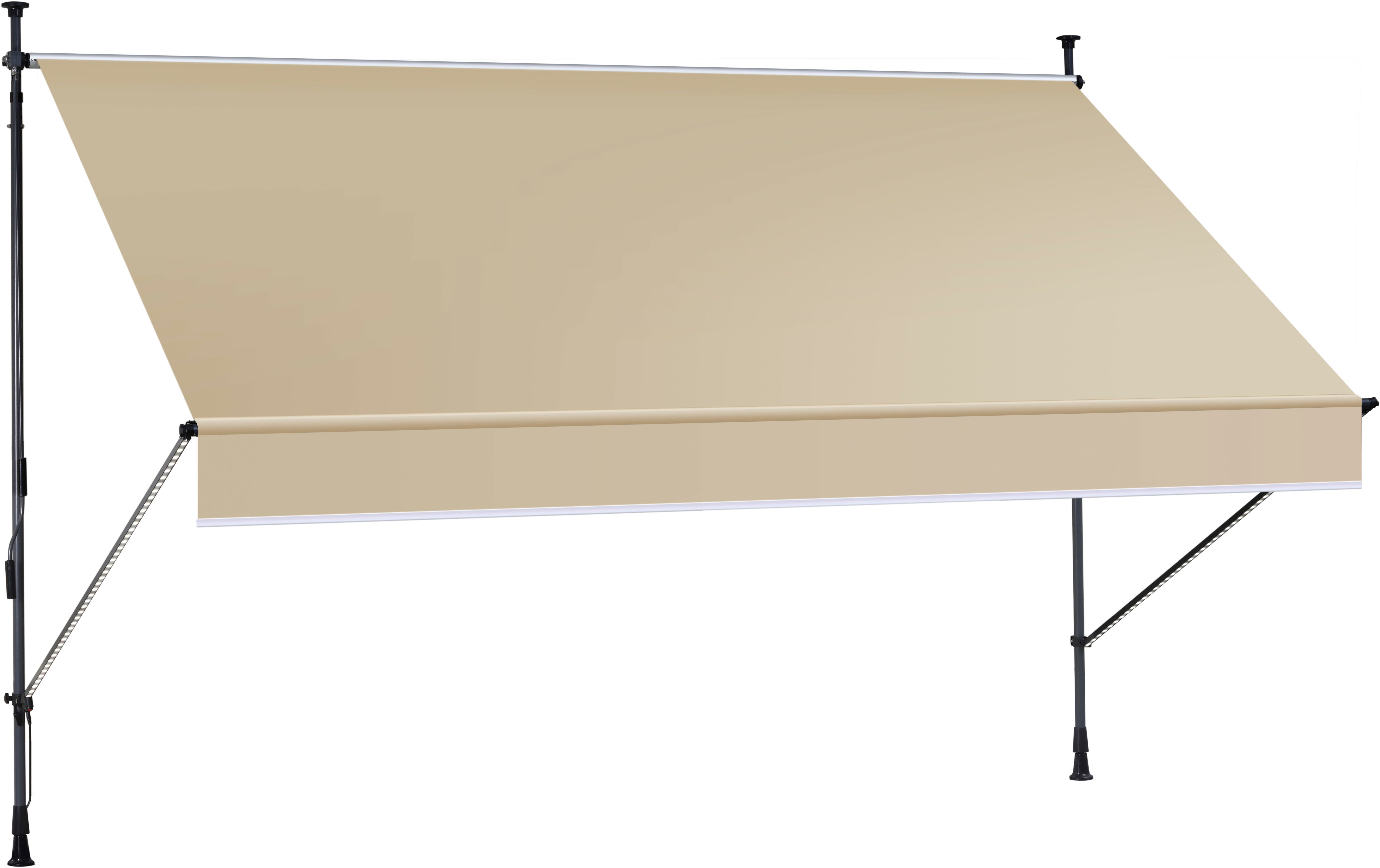 Windwiderstandsklasse | Klasse 1: Die Markise darf bis maximal Windstärke 4 ausgefahren bleiben. Definition: mäßige Brise,mäßiger Wind. Wind bewegt Zweige und dünnere Äste,hebt Staub und loses Papier (Geschwindigkeit 20-27 km/h). Bei fachgerechter Montage. |