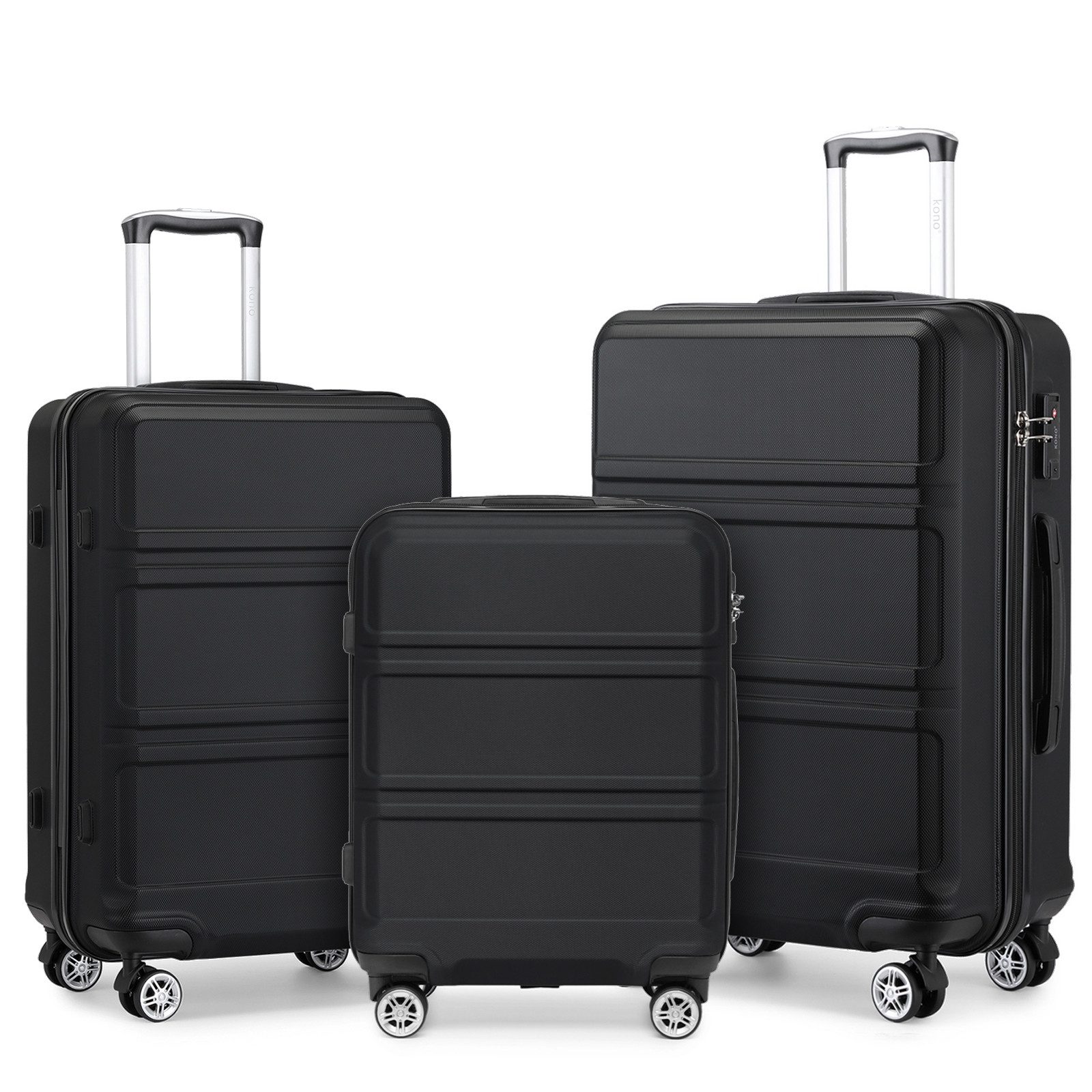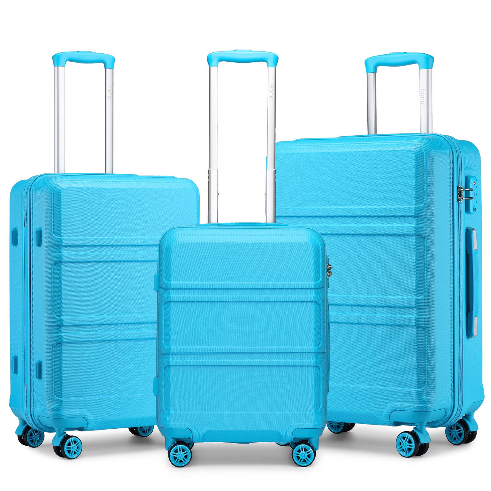 KONO 3-teiliges Hartschalen-Kofferset (M/L/XL) aus ABS – Handgepäck & Reisekoffer mit 4 Rollen & TSA-Schloss