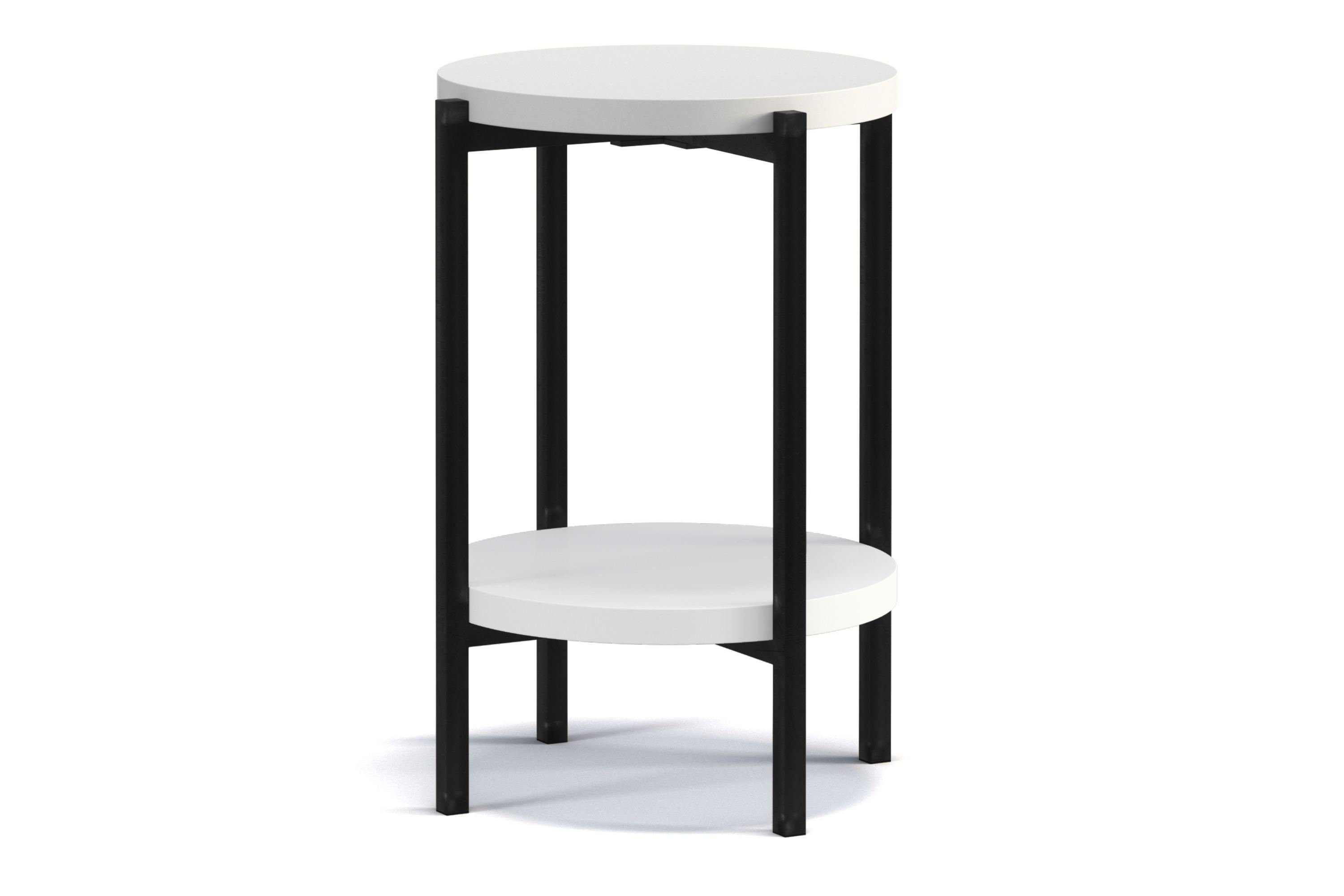Die präzise gearbeiteten Kanten der Tischplatte aus ABS-Material tragen zur Haltbarkeit und Ästhetik des Tisches bei. Dies sind feine Details, die die sorgfältige Verarbeitung und die Aufmerksamkeit für jeden Aspekt des Produkts unterstreichen. Die schwarzen Metallbeine mit einem Durchmesser von 2 cm bilden eine solide Basis, die die gesamte Struktur trägt. Ihr minimalistisches Design harmoniert perfekt mit der runden Tischplatte.
