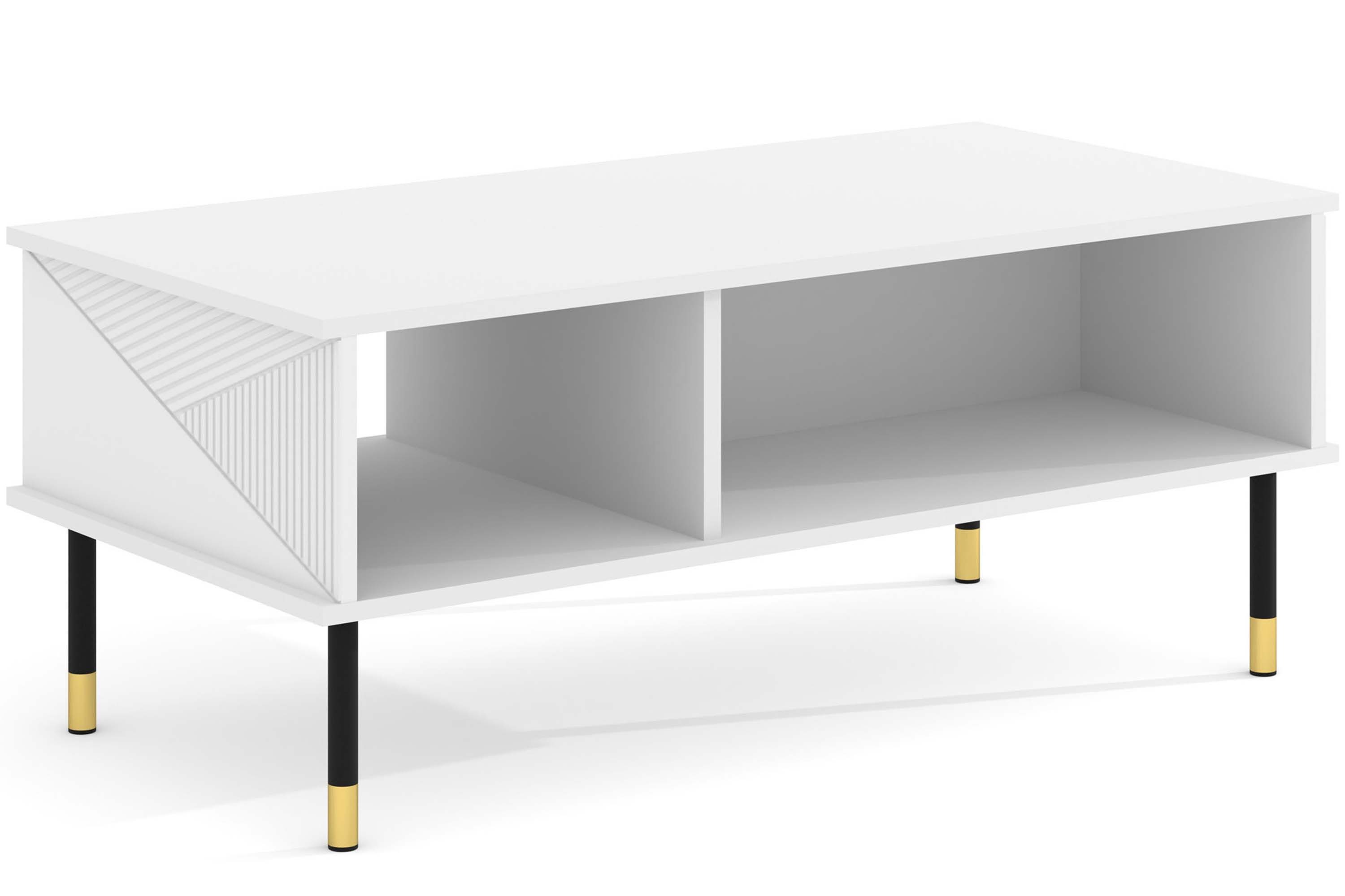 Jedes Stück der Kollektion wurde mit viel Liebe zum Detail entworfen. Die schlanken Metallbeine in Schwarz mit einem dezenten goldenen Akzent verleihen den Möbeln einen leichten und modernen Charakter. Ihre Höhe von 20 cm verleiht ihnen Eleganz und erleichtert das Reinigen der Unterseite der Möbel. Die Korpusse bestehen aus einer 16 mm dicken Schichtholzplatte, die für Stabilität und Widerstandsfähigkeit im täglichen Gebrauch sorgt, während die mit ABS-Technologie geschützten Kanten die Widerstandsfähigkeit gegen Beschädigungen erhöhen. Die Fronten aus MDF fallen durch auffällige, geometrische Ornamente auf, die den modernen Stil der Kollektion unterstreichen.