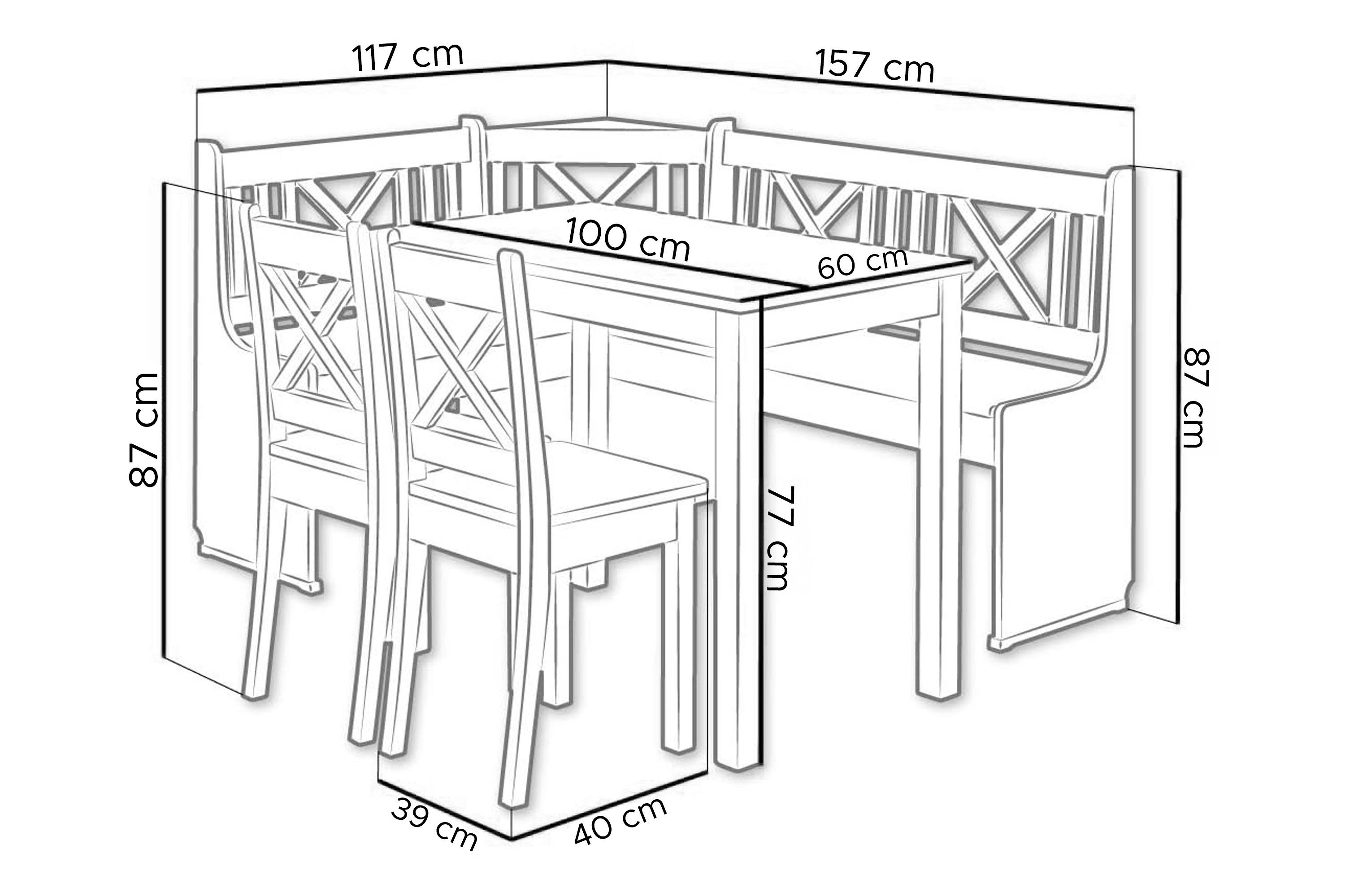 Das Ecksofa und die Stühle bieten optimalen Halt und Komfort, unabhängig davon, wie viel Zeit am Tisch verbracht wird. Es ist der perfekte Ort für den Morgenkaffee, das Familienessen oder das abendliche Treffen mit Freunden. Das Set CULIO besteht aus einer Küchenecke, die den Raum optimal nutzt und eine bequeme Sitzgelegenheit bietet, einem soliden Tisch, der sich sowohl für die täglichen Mahlzeiten als auch für gelegentliche Zusammenkünfte eignet, und zwei Stühlen, die das Ganze harmonisch abrunden und Komfort und Stabilität garantieren.