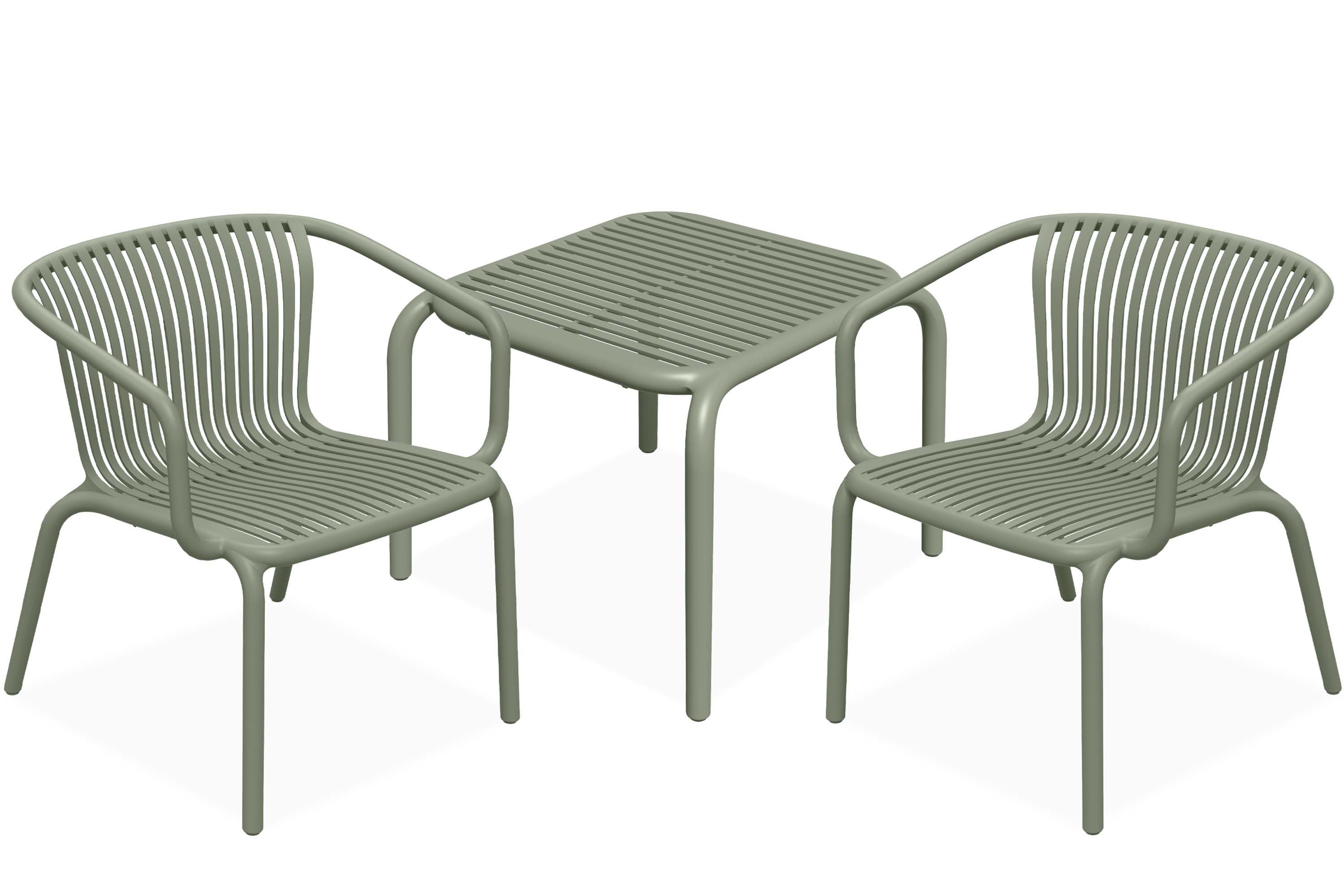 Lieferumfang | 2 Gartenstühle mit Armlehnen 1 Tisch |