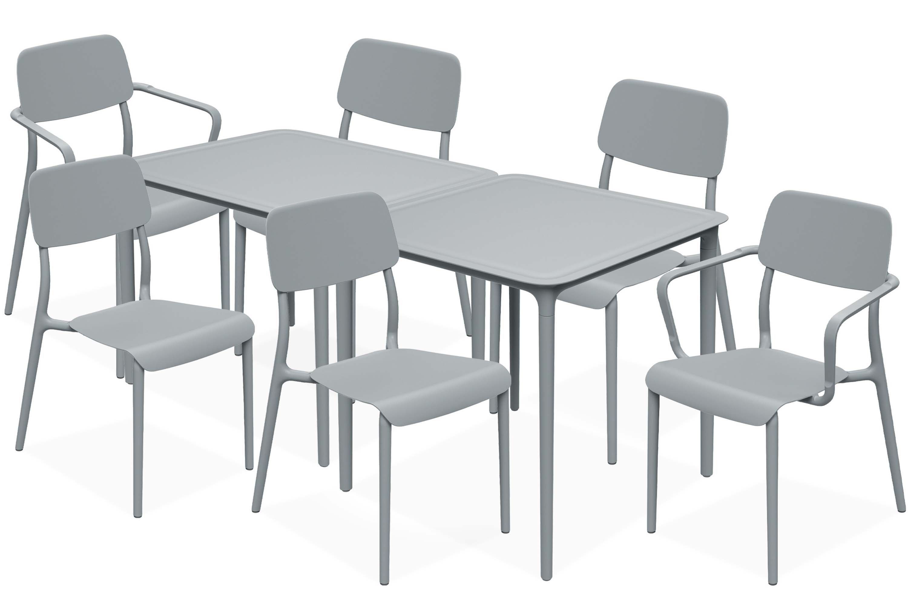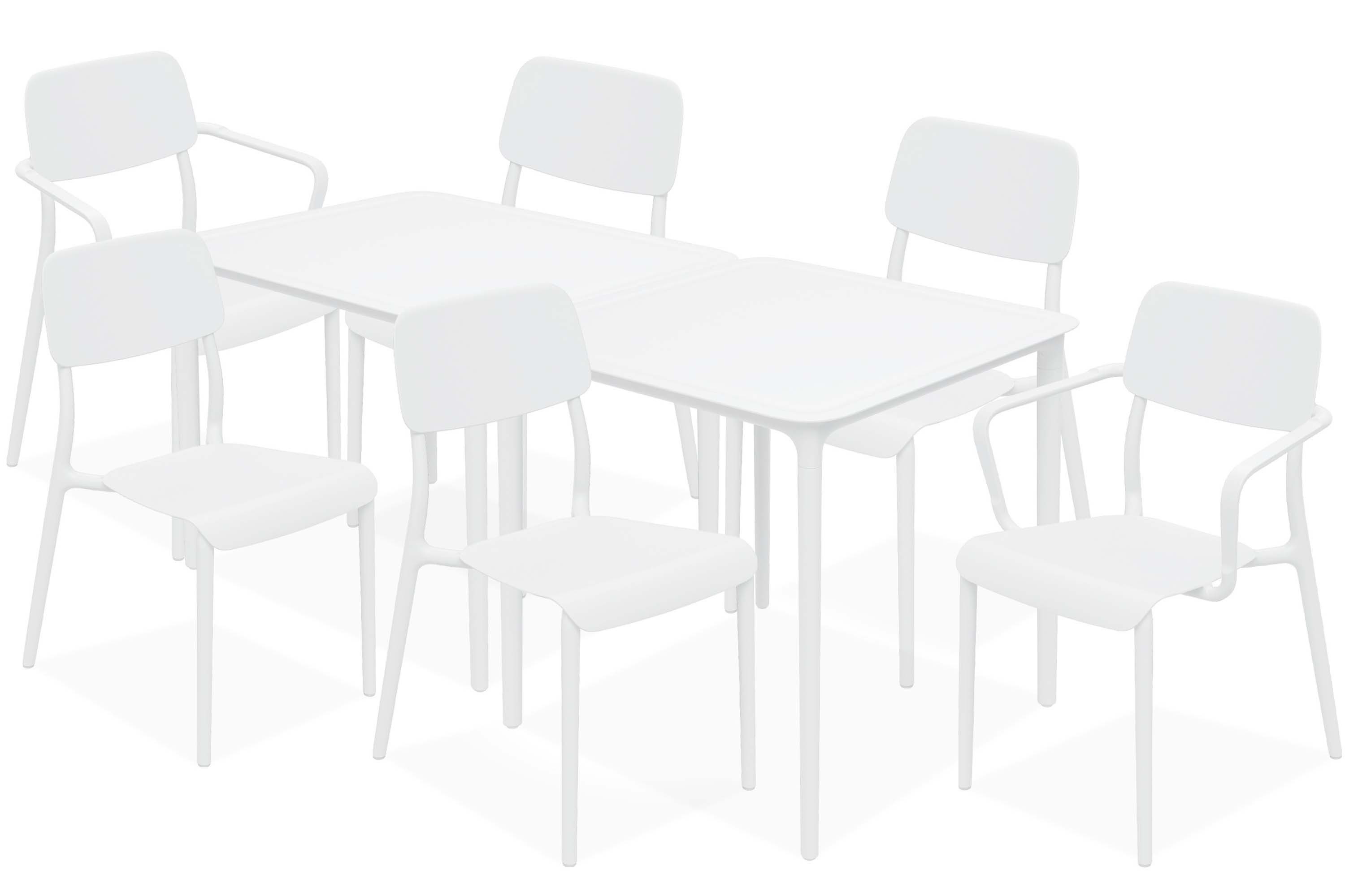Lieferumfang | 4 Stühle ohne Armlehnen 2 Stühle mit Armlehnen 2 Tische |