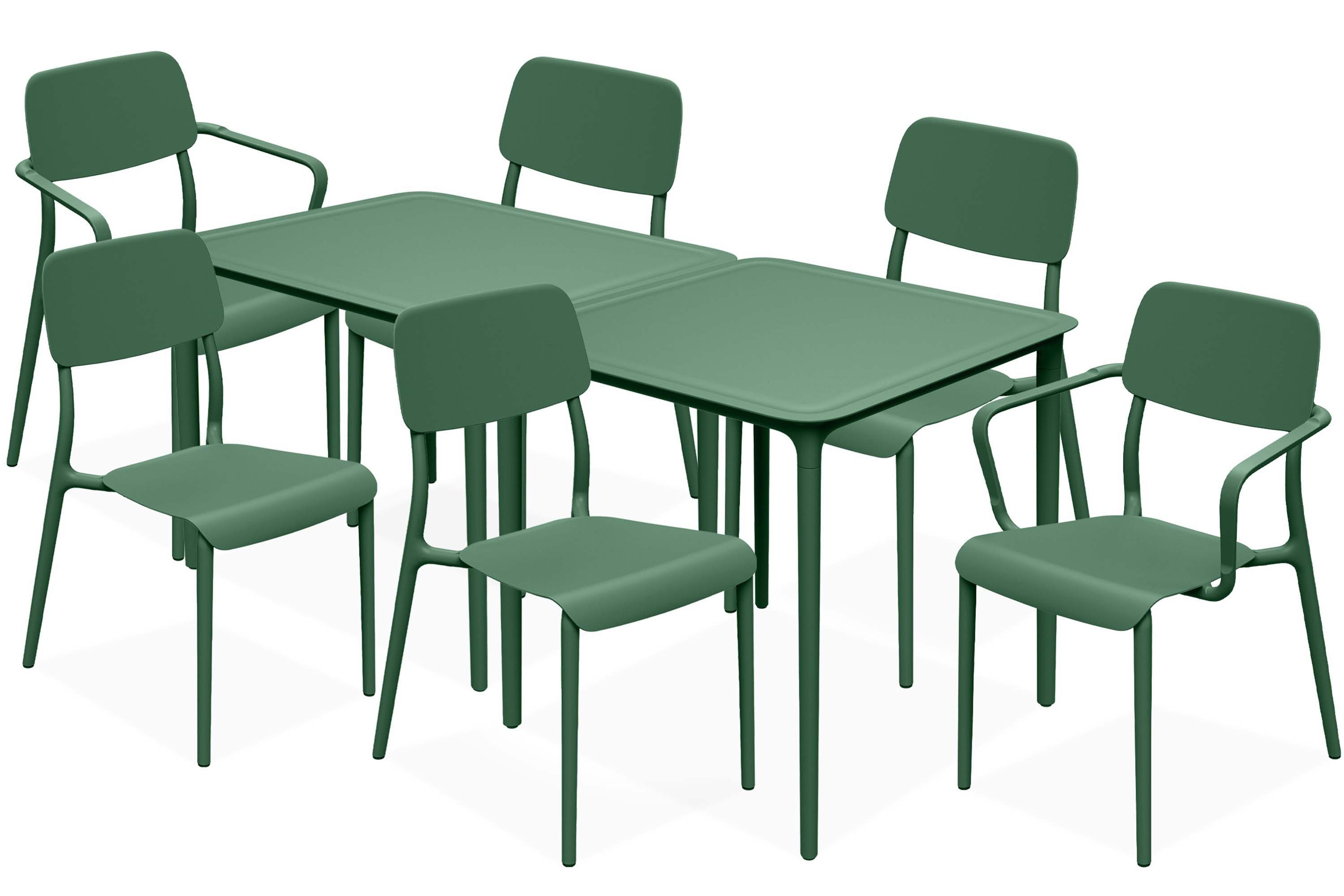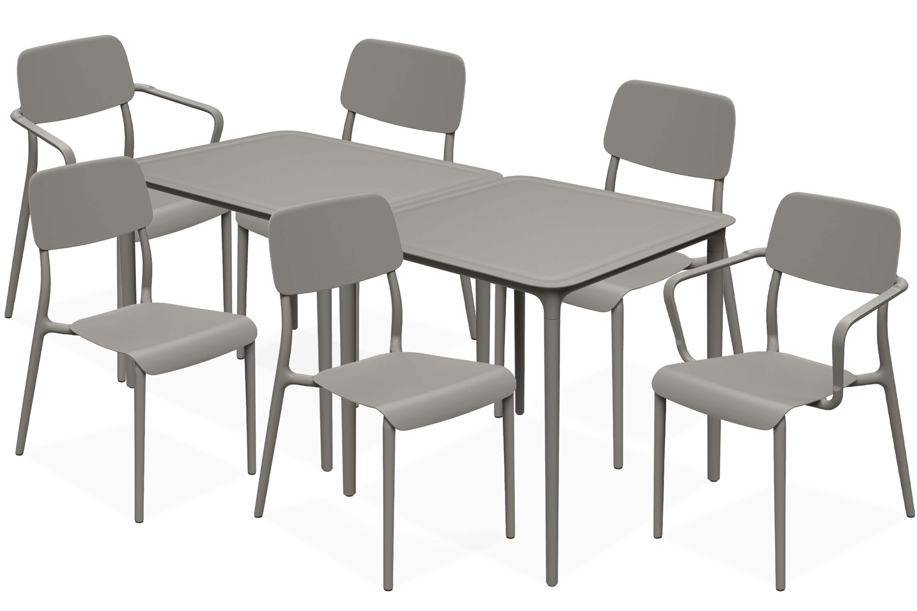 Ausführung | 4 Stühle ohne Armlehnen, 2 Stühle mit Armlehnen, 2 Tische |