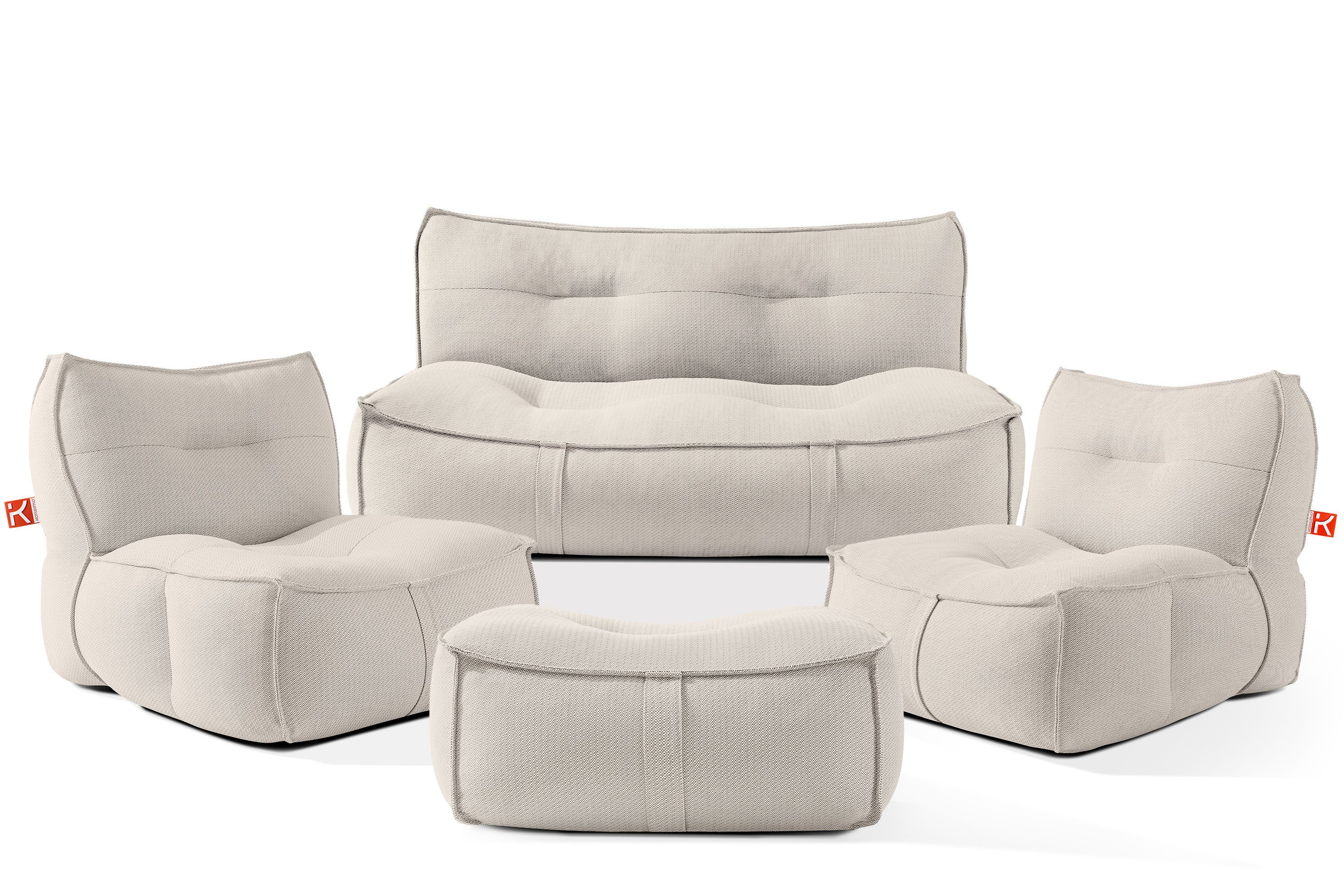 Lieferumfang | 2x Gartensessel mit integrierter Schutzhülle 1x Gartensofa mit integrierter Schutzhülle 1x Gartenpouf mit integrierter Schutzhülle |