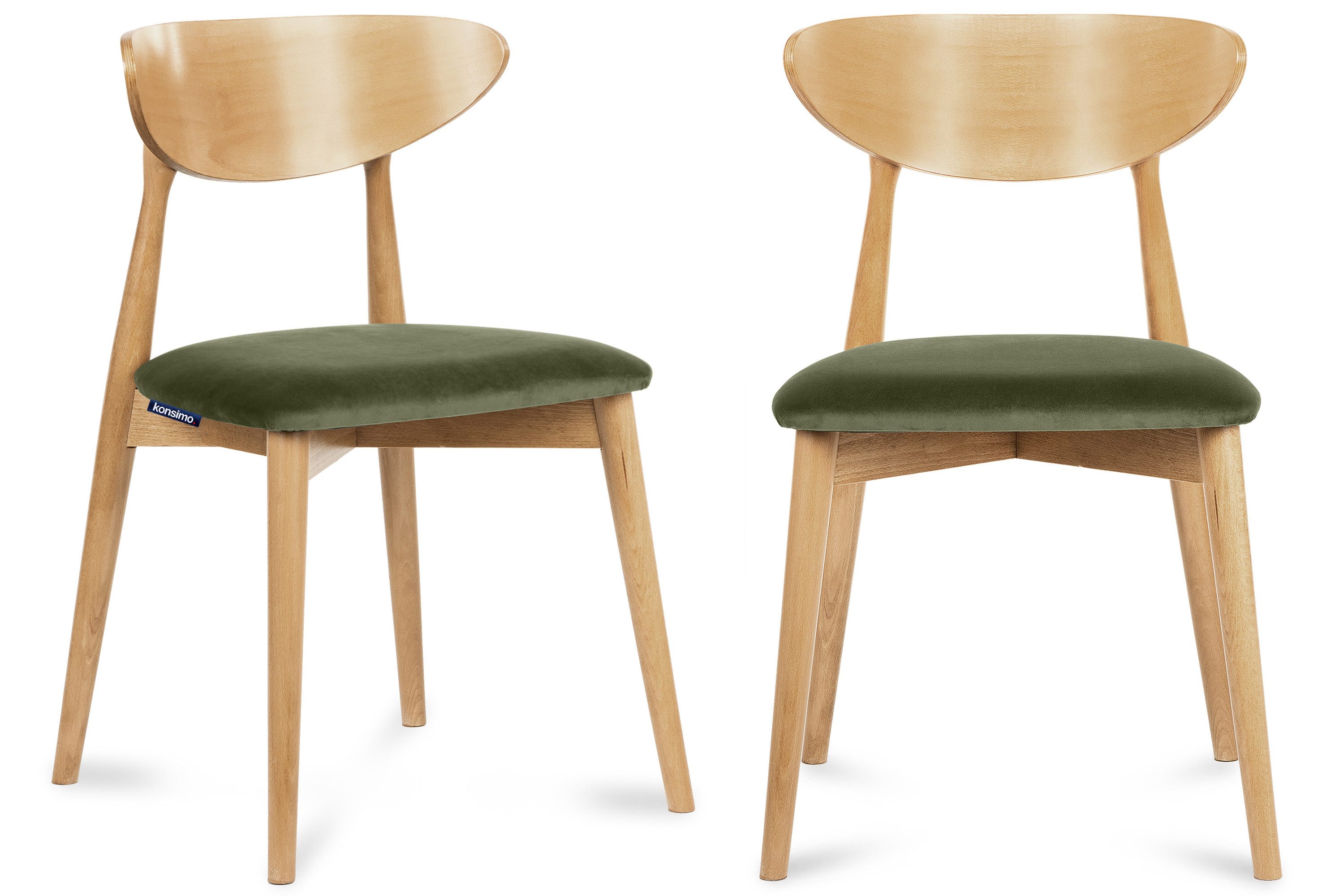 Der RABI-Stuhl ist ein Klassiker, der an den Retro-Stil anknüpft und den charakteristischen Veloursbezug harmonisch mit verschiedenen Farbtönen des Massivholzrahmens kombiniert.