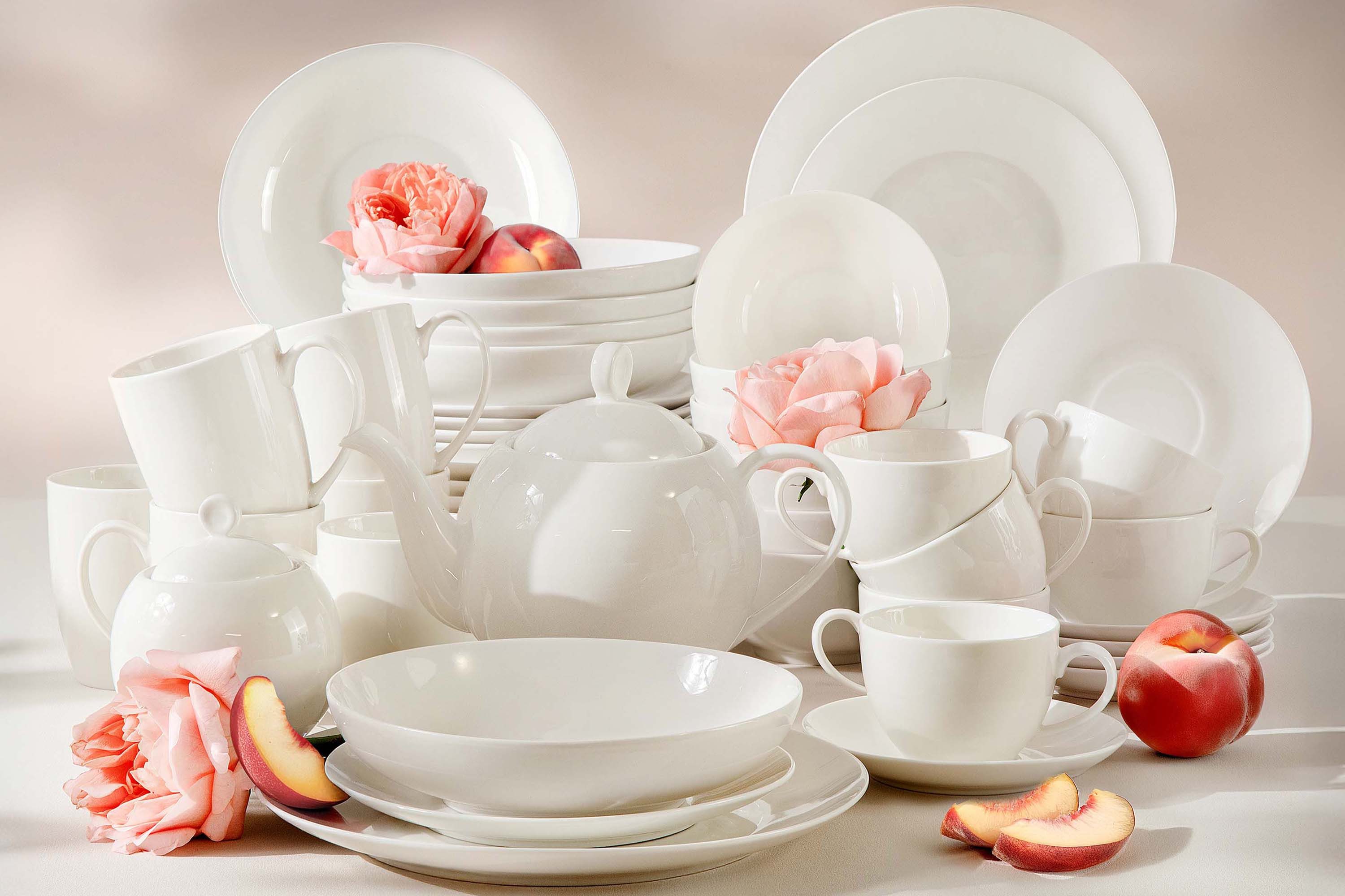 Zeitlose Eleganz - klassisches cremefarbenes Porzellan, das nie aus der Mode kommt und zu jedem Tisch passt.
