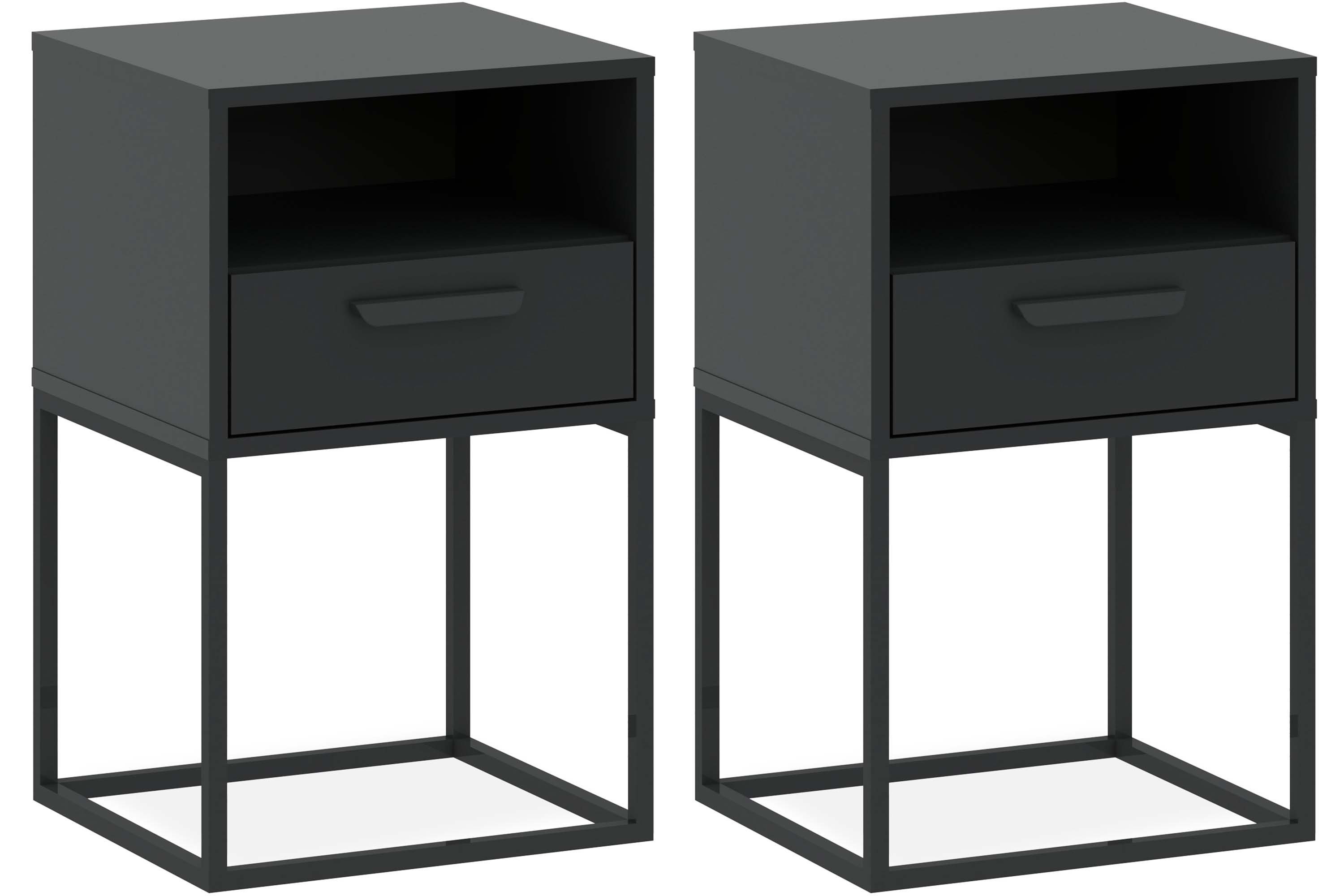Das profilierte Metallgestell in Schwarz verleiht den Tischen eine leichte und moderne Ausstrahlung, während die soliden Materialien und die präzise Verarbeitung für Langlebigkeit und Widerstandsfähigkeit im täglichen Gebrauch sorgen. Die Kollektion umfasst Modelle mit Push-to-Open-System für Liebhaber minimalistischer Lösungen - die Schublade wird durch einen leichten Druck geöffnet - sowie Versionen mit klassischem Griff, der einen subtilen Kontrast bildet und den eleganten Look des Tisches unterstreicht. Einige Вариантыn verfügen über eine zusätzliche offene Ablage, ideal für Bücher, Telefon oder andere wichtige Dinge.