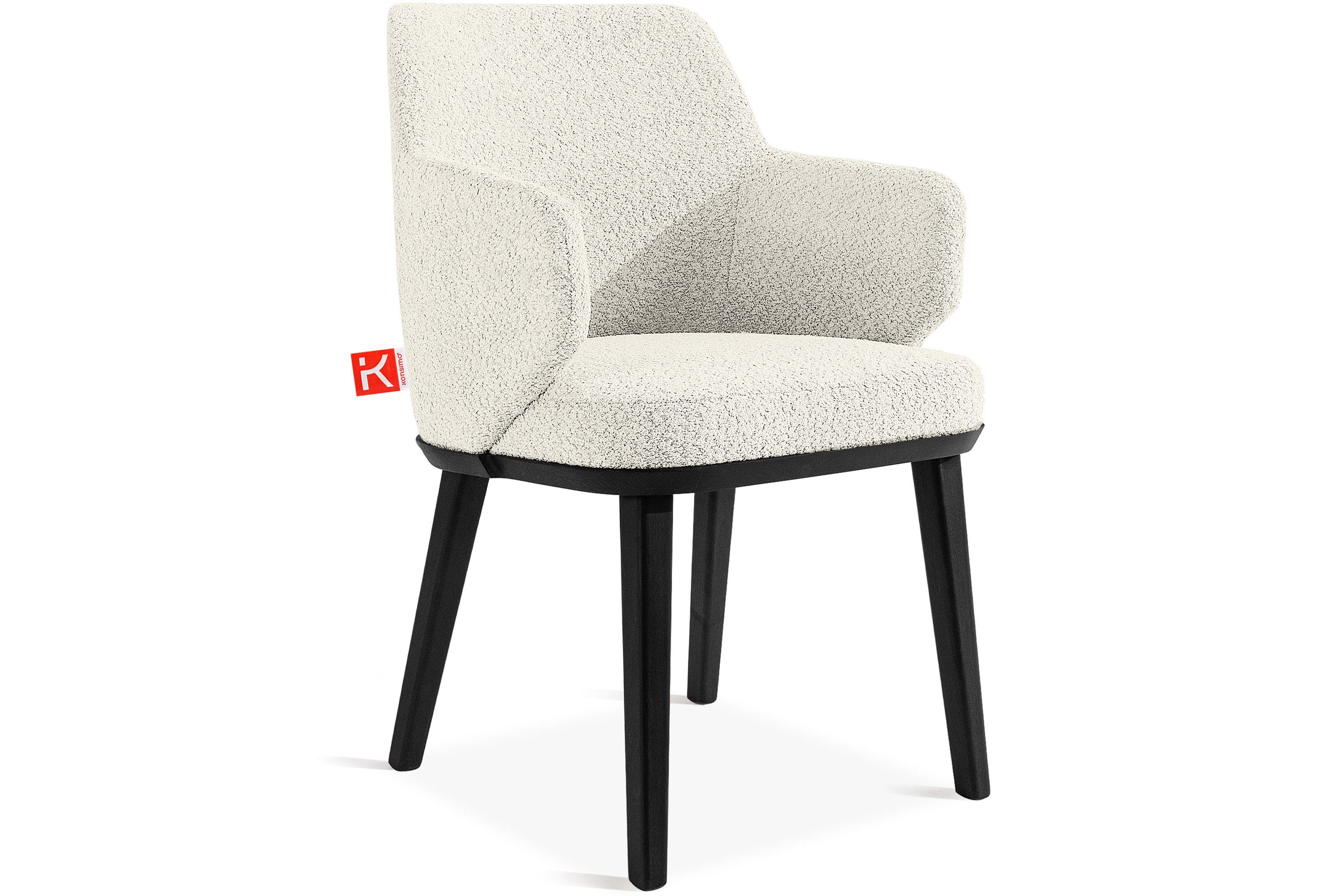Die Sitzfläche und die Rückenlehne bestehen aus mehreren Schaumstoffschichten, die auch bei längerem Gebrauch für außergewöhnlichen Komfort sorgen. Spezielle Belüftungslöcher im unteren Teil des Rahmens sorgen für eine gute Luftzirkulation im Inneren des Sitzes, was den Komfort und die Haltbarkeit des Möbels weiter erhöht. Der Kunde kann zwischen drei einzigartigen Bezügen wählen, die den Charakter der Stühle auf unterschiedliche Weise unterstreichen. Der dezente Flechtstoff verleiht einen zarten Charme, der weiche und luxuriöse Velours sorgt für Eleganz, und der modische Bouclé-Stoff besticht durch seinen einzigartigen Stil und seine Struktur.