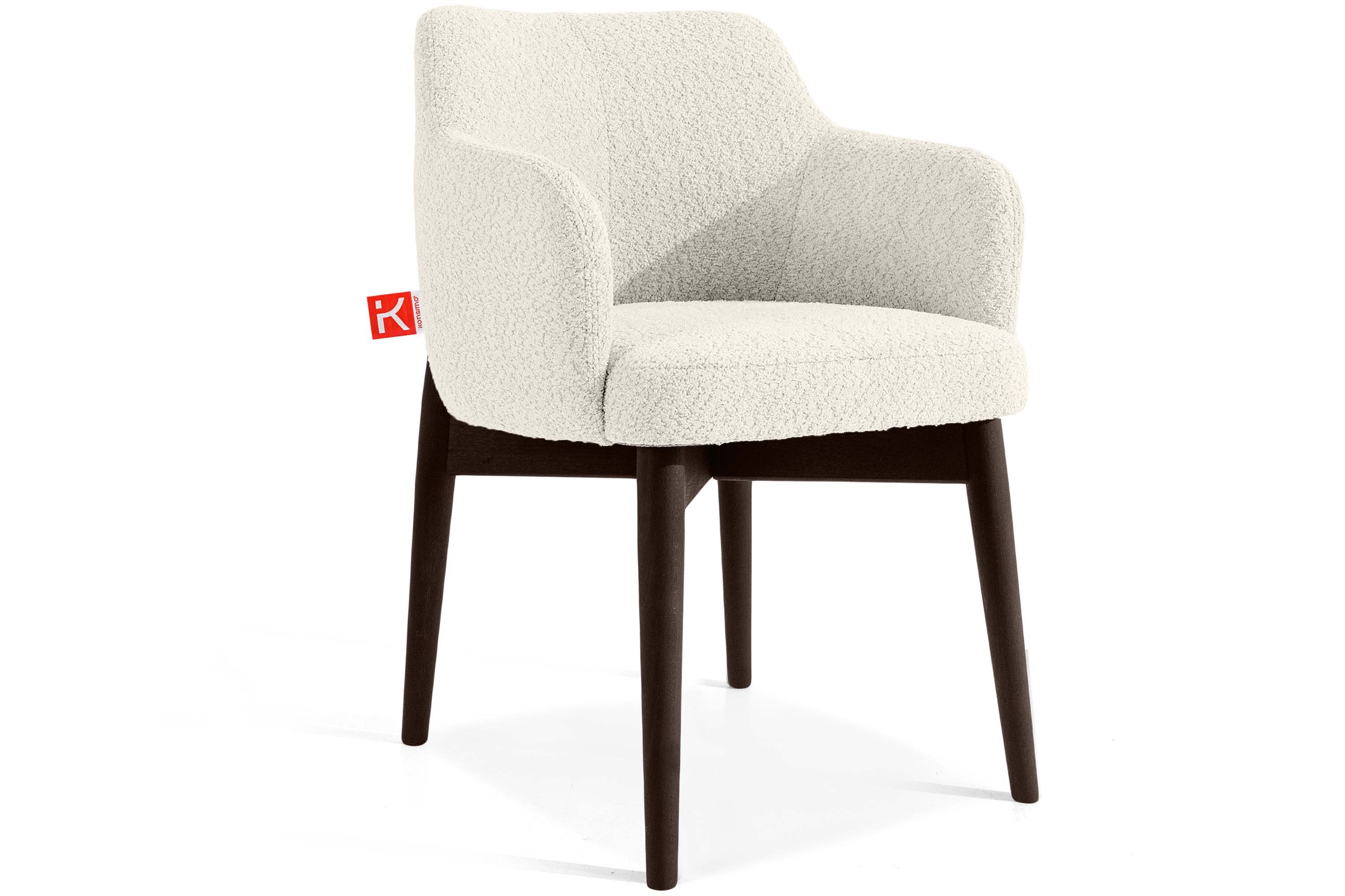 Die Sitzfläche und die Rückenlehne bestehen aus mehreren Schaumstoffschichten, die auch bei langem Gebrauch für außergewöhnlichen Komfort sorgen. Der einteilige Rahmen garantiert Haltbarkeit und Stärke. Der Kunde kann zwischen drei einzigartigen Bezügen wählen, die den Charakter der Stühle auf unterschiedliche Weise unterstreichen. Der dezente karierte Stoff verleiht einen zarten Charme, der weiche und luxuriöse Velours sorgt für Eleganz, und der modische Bouclé-Stoff besticht durch seinen einzigartigen Stil und seine Struktur.