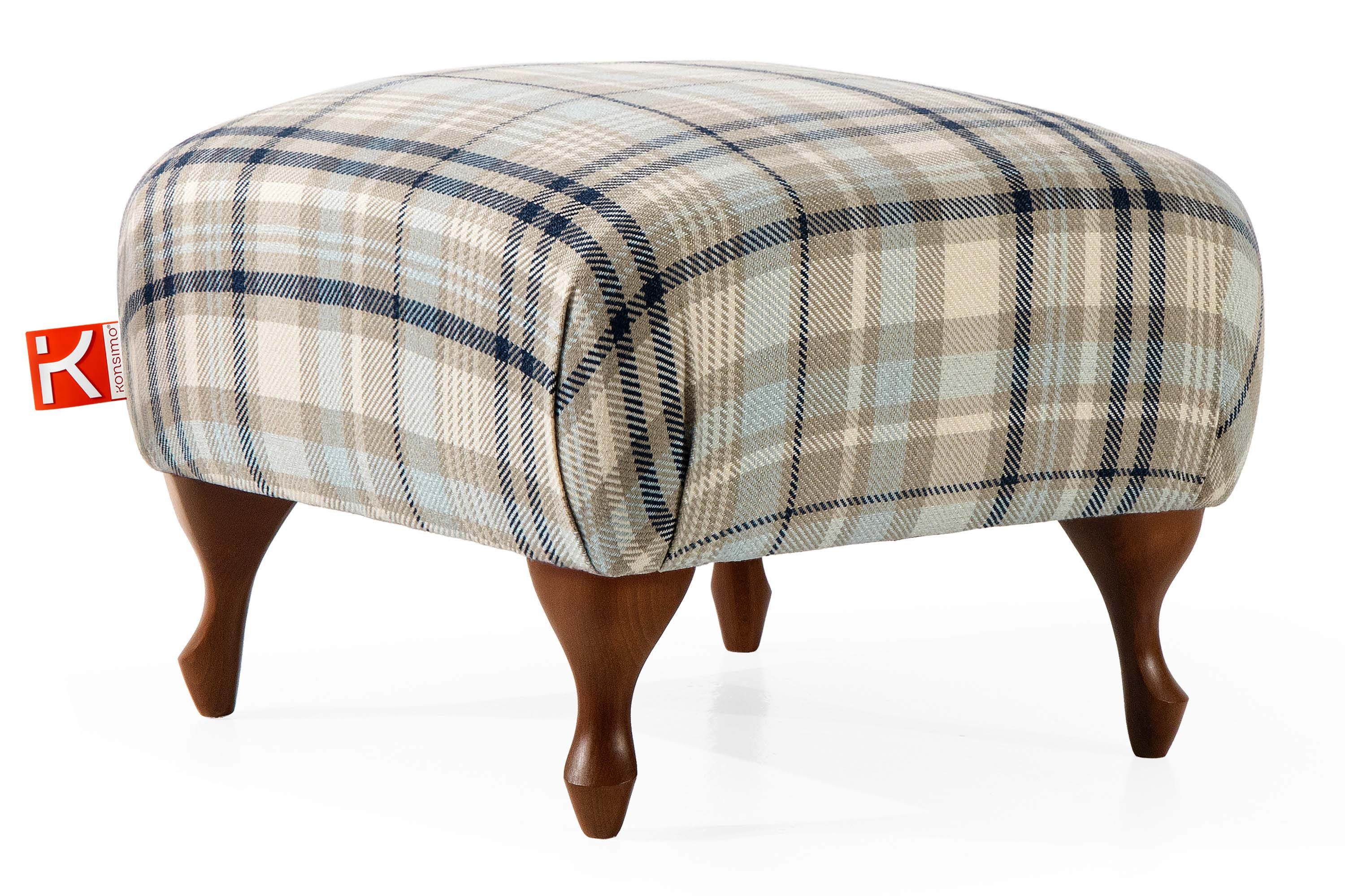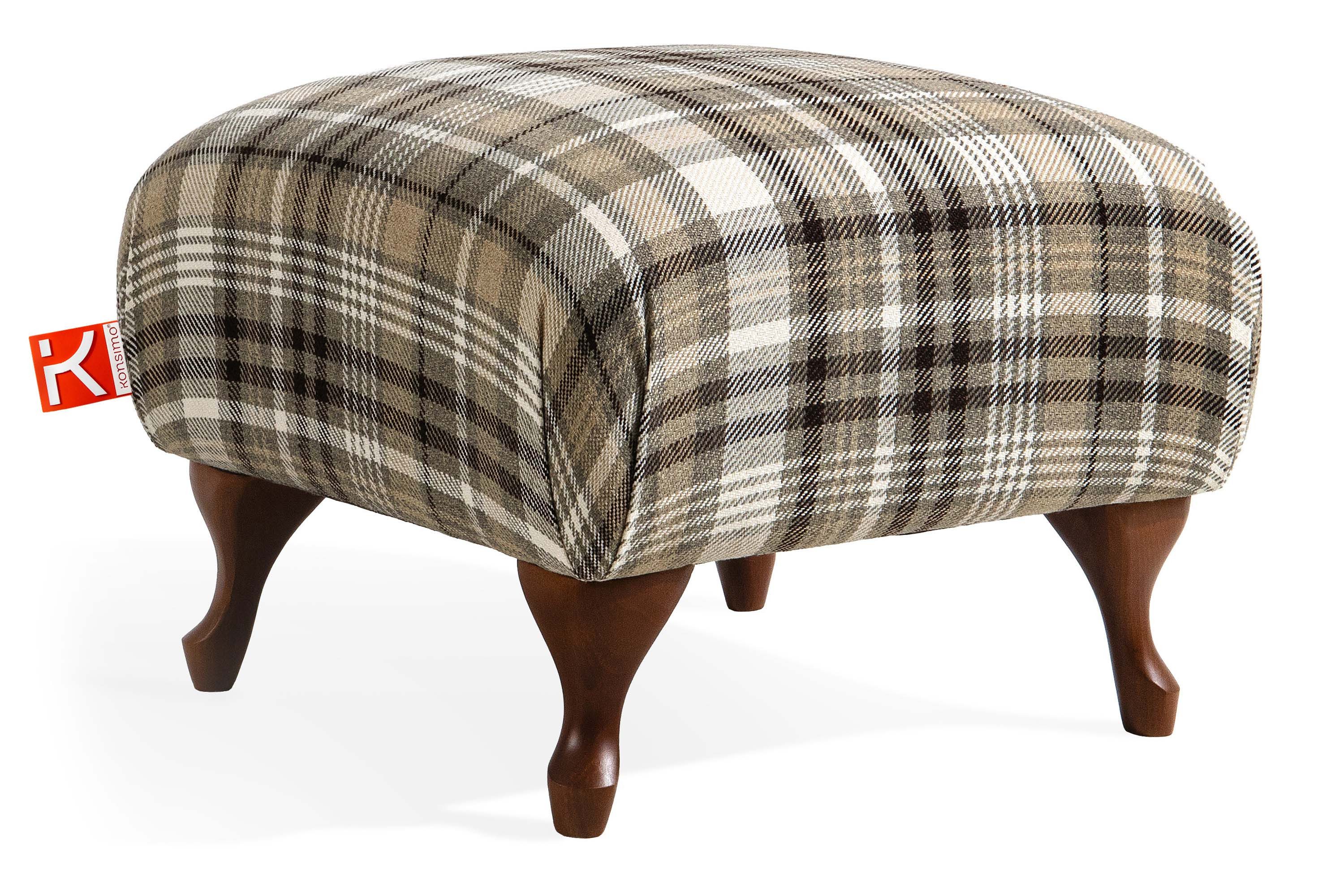 Der Bezug aus strapazierfähigem Stoff ist in verschiedenen Farben erhältlich, darunter zwei elegante Karomuster, die den zeitlosen Charakter des Möbelstücks unterstreichen. Die Sitzfläche ist mit Wellenfedern und die Rückenlehne mit Polsterstreifen ausgestattet, was Komfort und guten Halt für den Rücken garantiert. Die einzigartigen, dekorativen Vorderbeine sind aus Massivholz gefertigt, was dem Sessel Stabilität, Eleganz und natürlichen Charme verleiht. Zusätzlich bieten wir eine Fußstütze an, die separat oder im Set erworben werden kann.