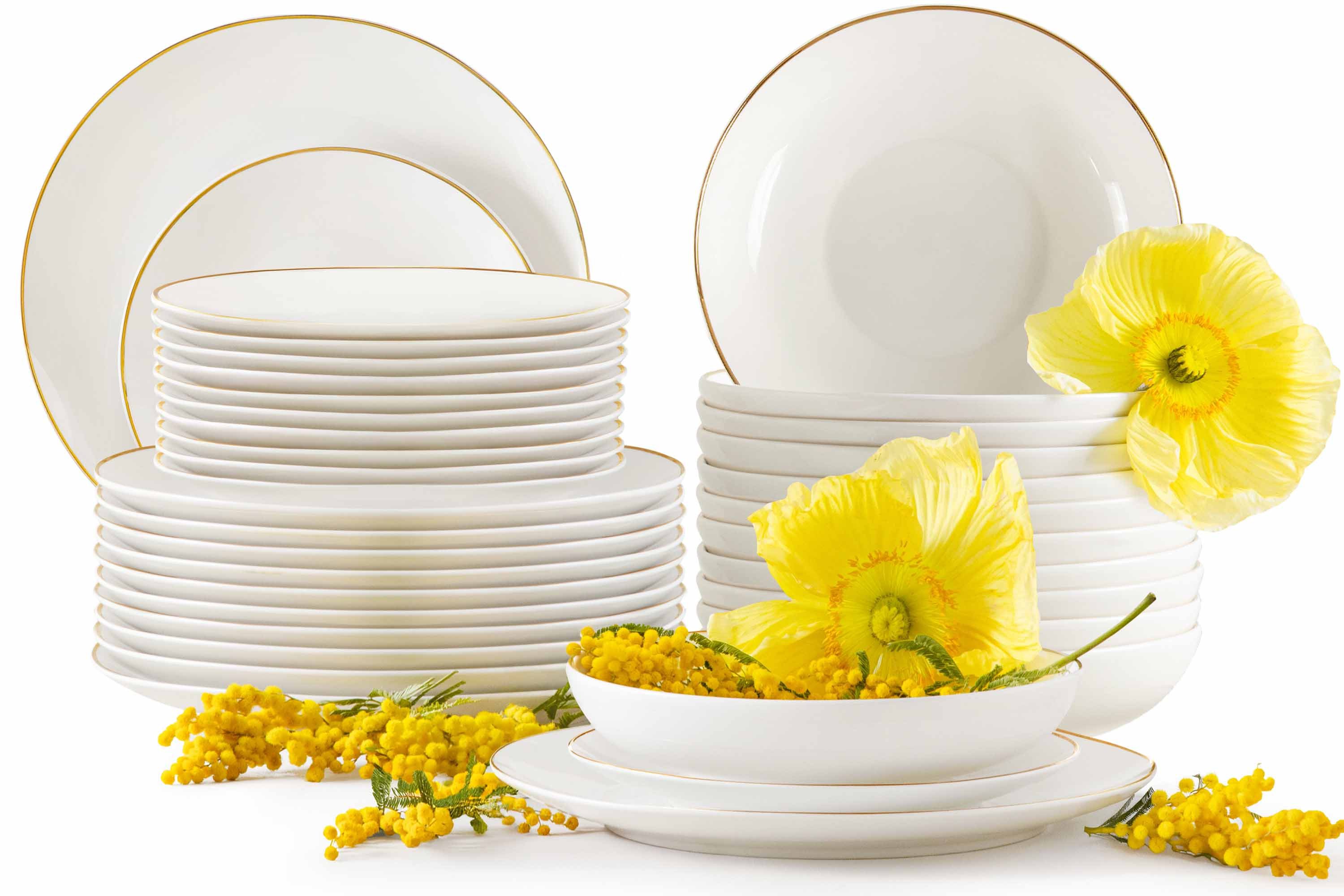 12x Speiseteller Ø26 cm | h 2,5 cm 12x Suppenteller Ø20 cm | h 5 cm | 900 ml 12x Dessertteller Ø20 cm | h 2,3 cm