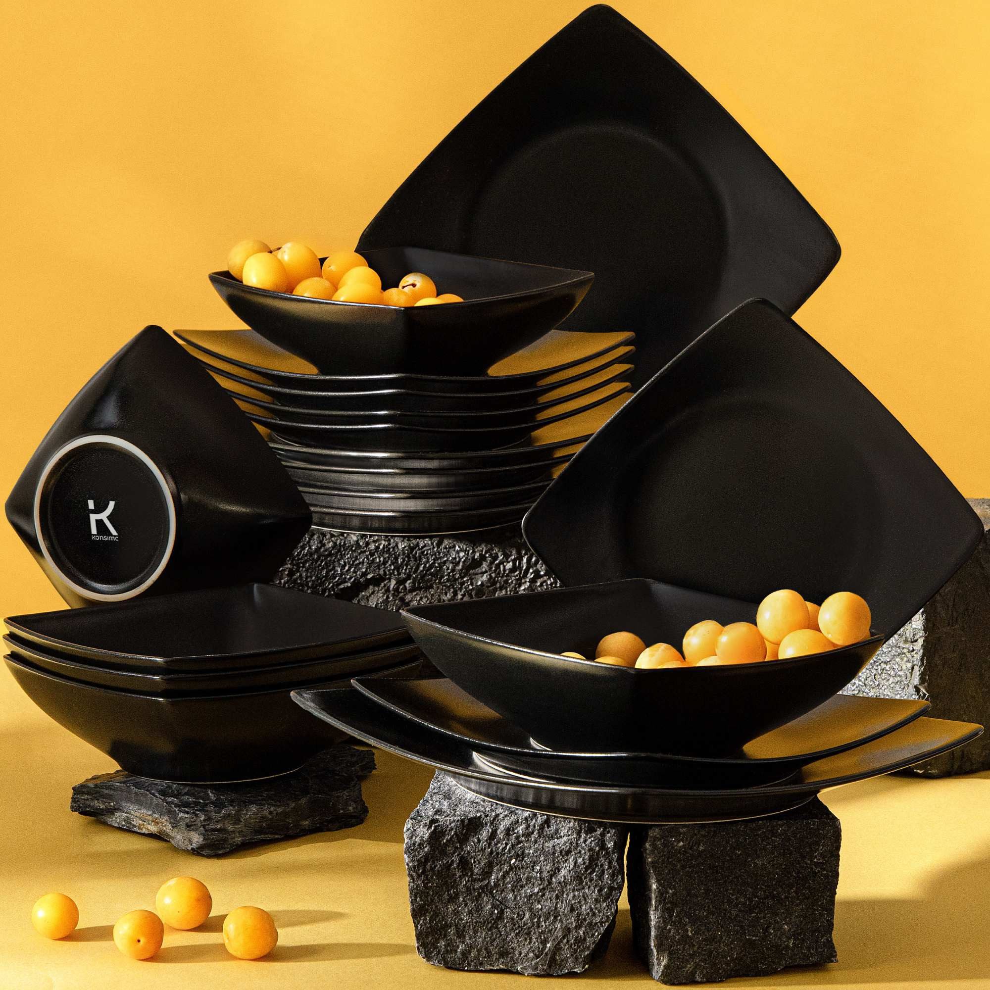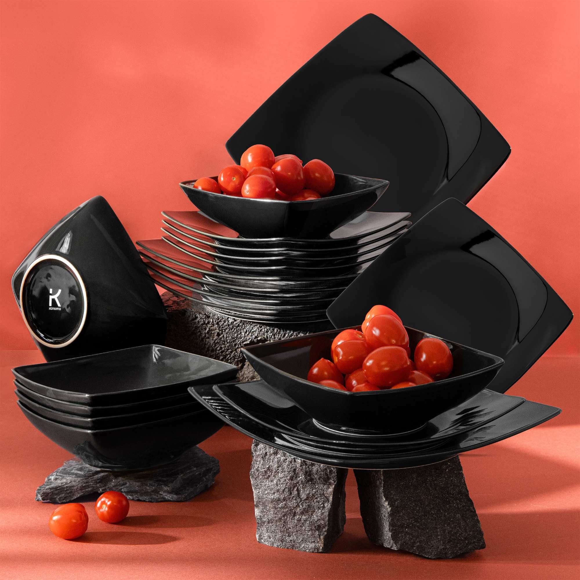 6x Speiseteller 25x25 cm, 6x Suppenteller 17x17 cm | 0,5l, 6x Dessertteller 21x21 cm.