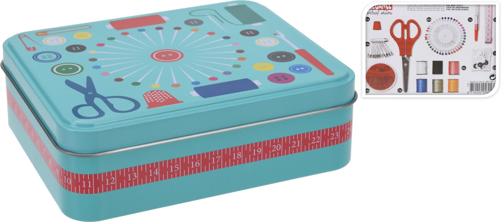 • Material: Metallbox (Dose); Zubehör aus Metall/Texti