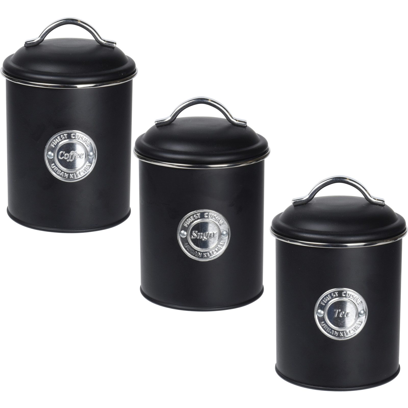 • 3x Dosen in Schwarz (Coffee, Tea, Sugar)
