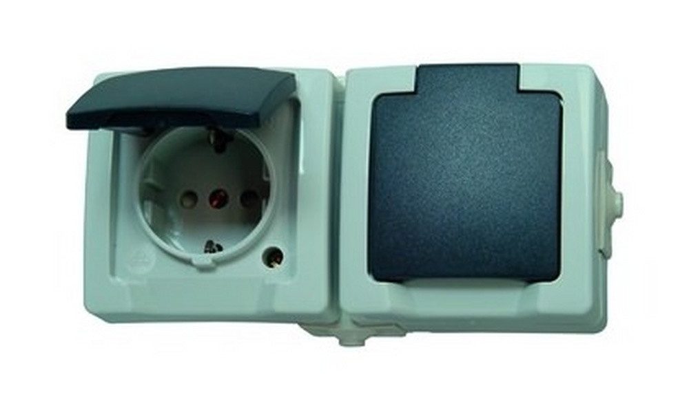 Kopp Steckdose 2fach grau matt Aufputz mit erhöhtem Berührungsschutz horizontal mit Klappdeckel IP44 Komplettgehäuse