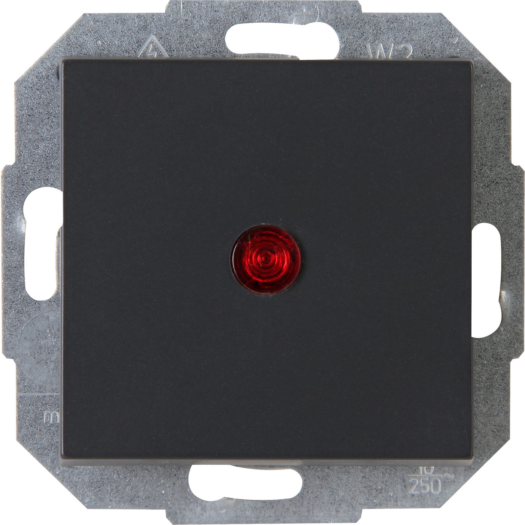 ATHENIS – Kontrollschalter (Aus-/Wechselschalter) mit integrierter Linse und eingesetzter Glimmlampe zur optischen Schaltzustandsanzeige. Geeignet für eine Bemessungsspannung von 250 V~ und ein Schaltvermögen von 10 AX. Zur Unterputzmontage, Schutzart IP20. Farbe: anthrazit.
