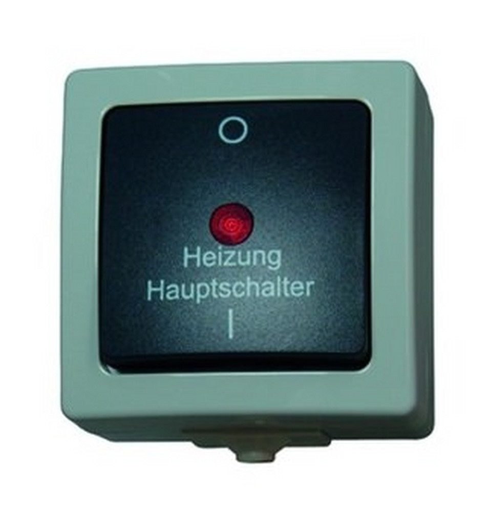 Kopp Wippschalter Beleuchtung mit Glimmlampe grau matt Aufputz IP44 2p 1f