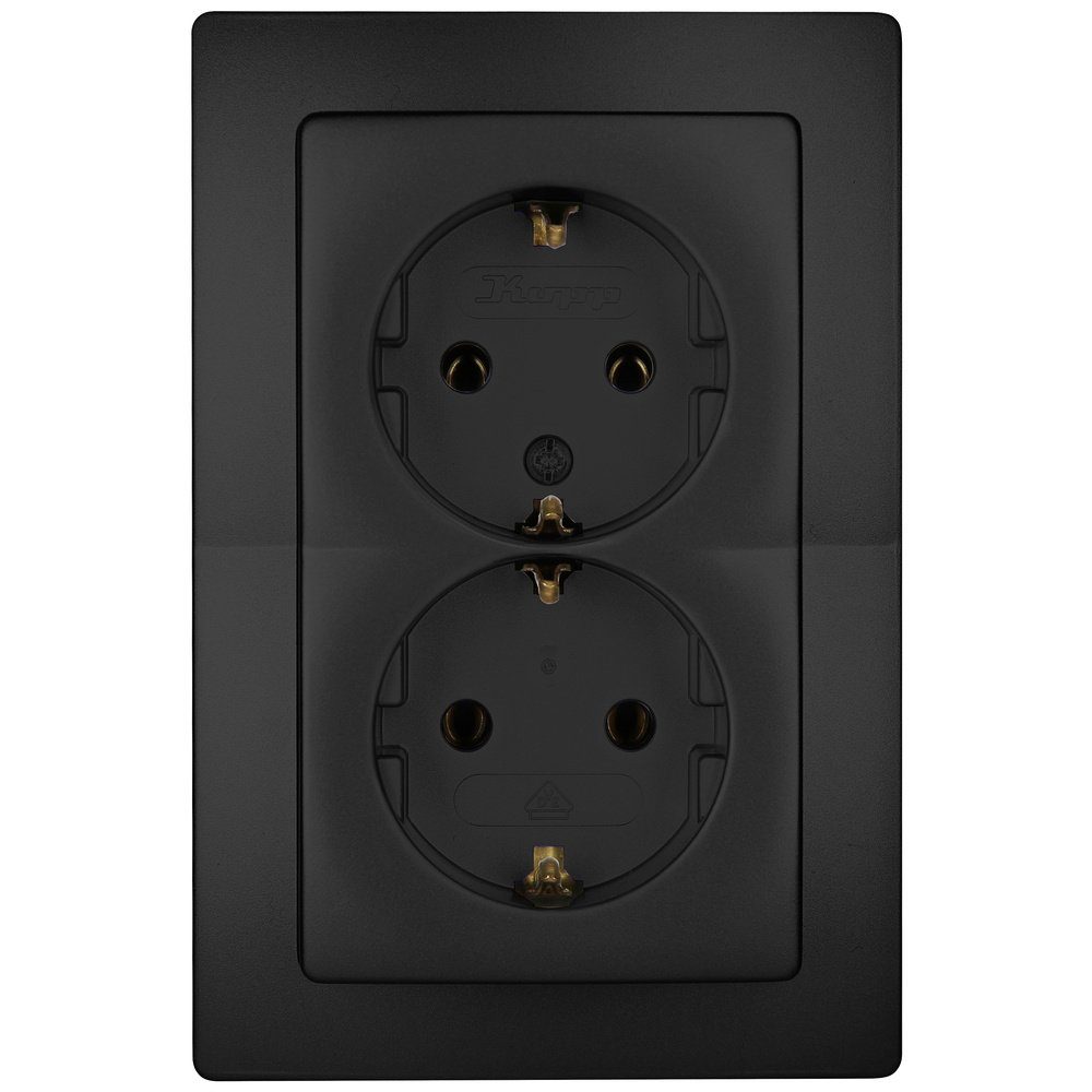 2-fach Schutzkontakt-Steckdoseim Design PARIS und der Farbe Mattschwarz,ohne erhöhten Berührungsschutz, Komplettgerät für den Einbau in eine 1-fach Schalterdose Ø60mm, 16A, 250V~, Schutzart IP20