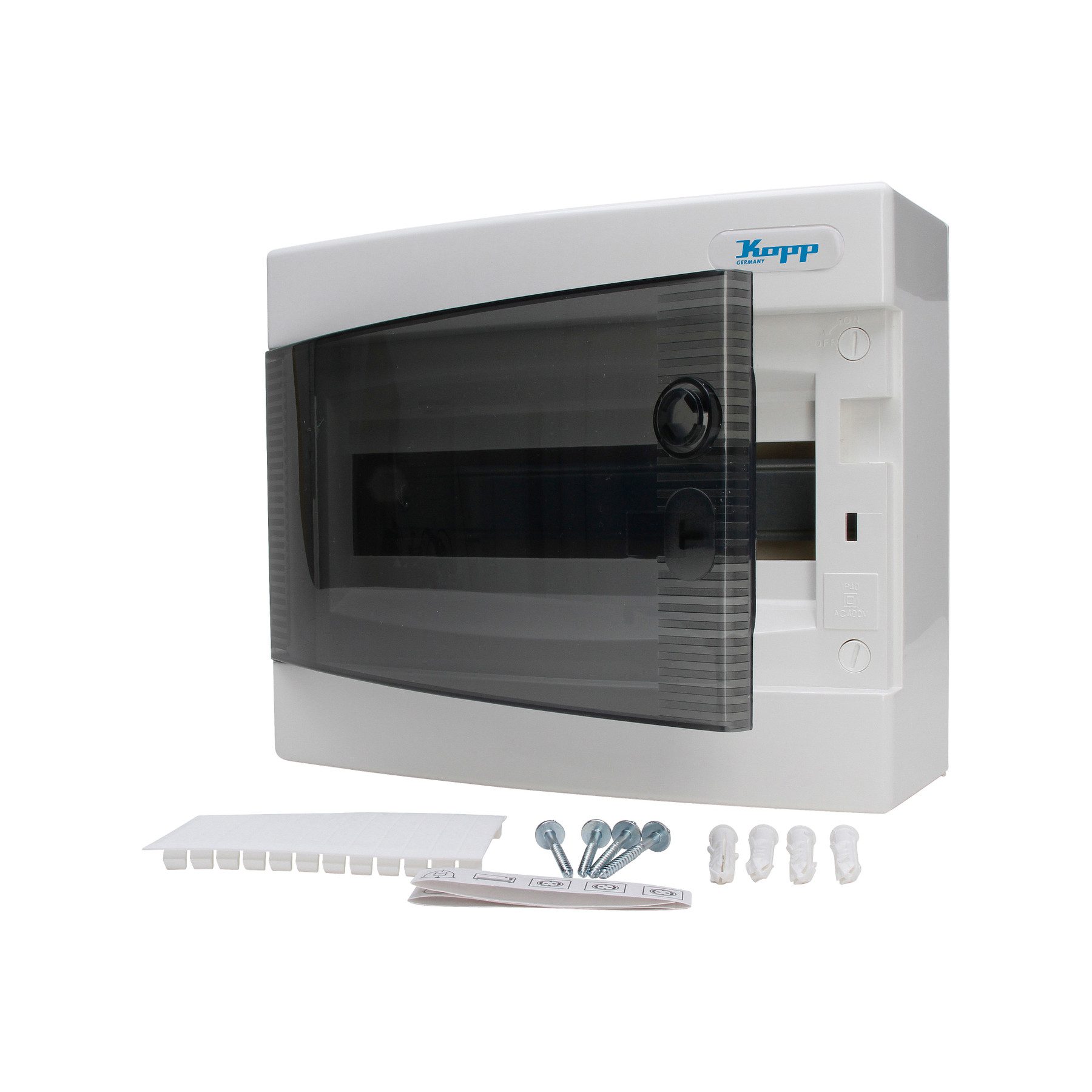 Kopp Verteilerbox KOPP Aufputz-Verteilerkasten N12C, IP40, mit Tür, 1-reihig, 12 Pole