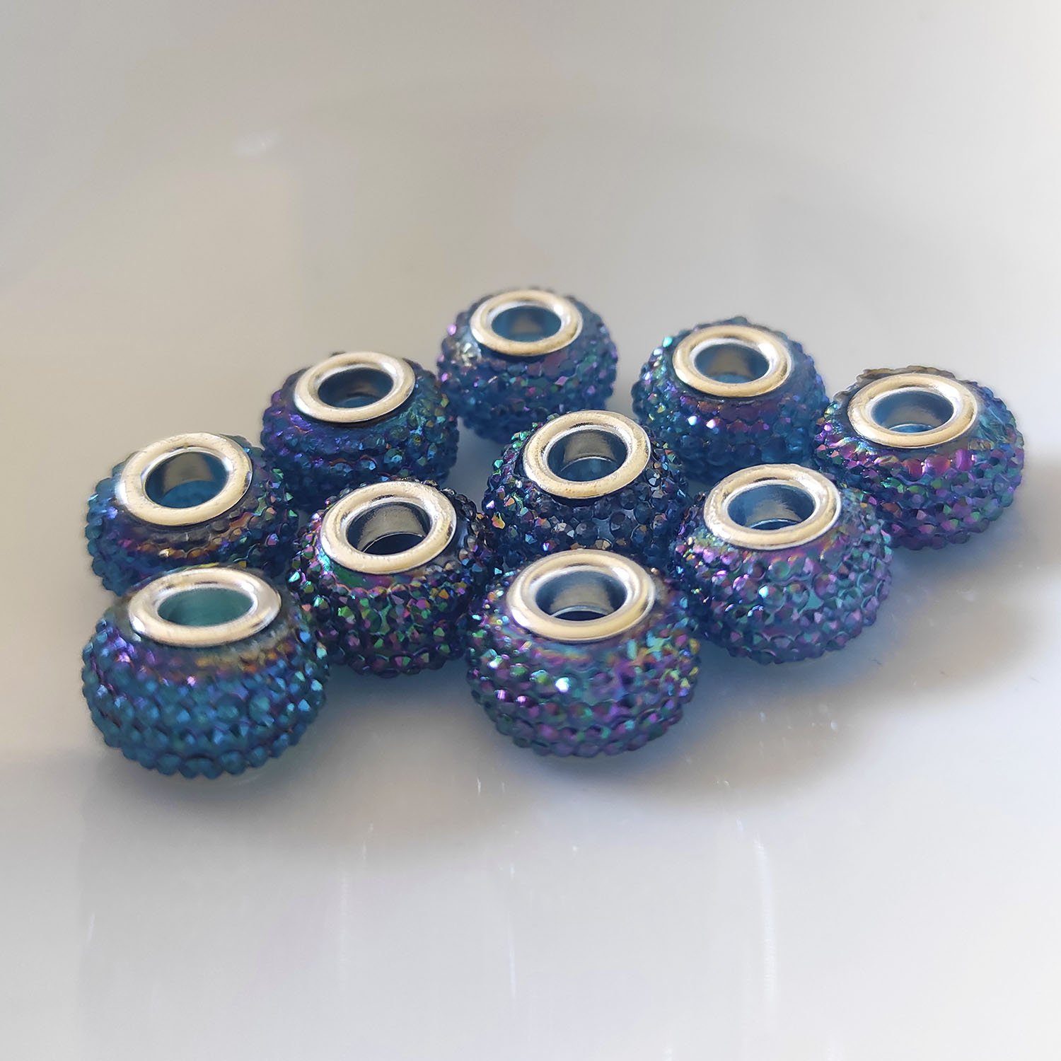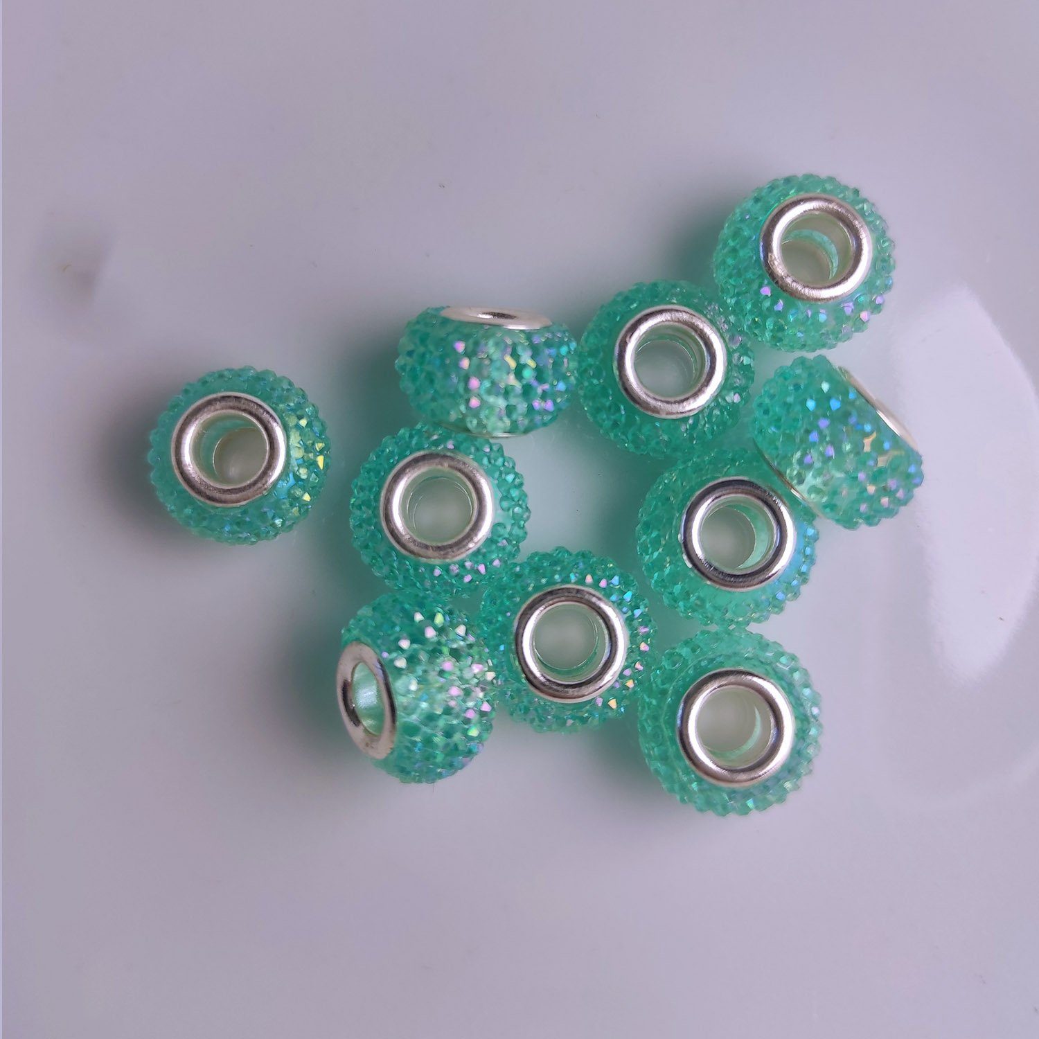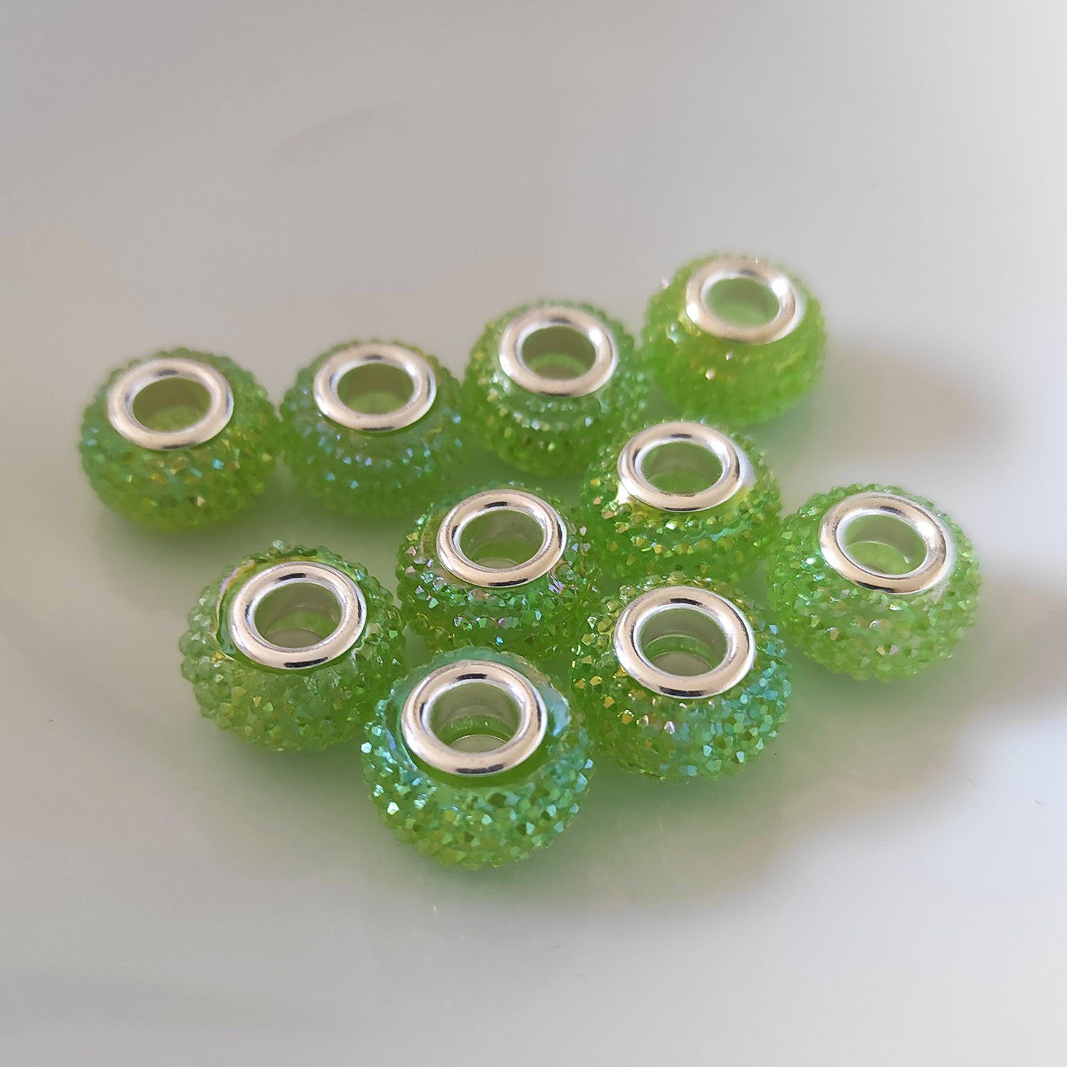 Glitzernde Großlochperlen, 14 mm, ideal für DIY-Schmuckprojekte. 10 Stück pro Einheit, perfekt für individuelle Kreationen.