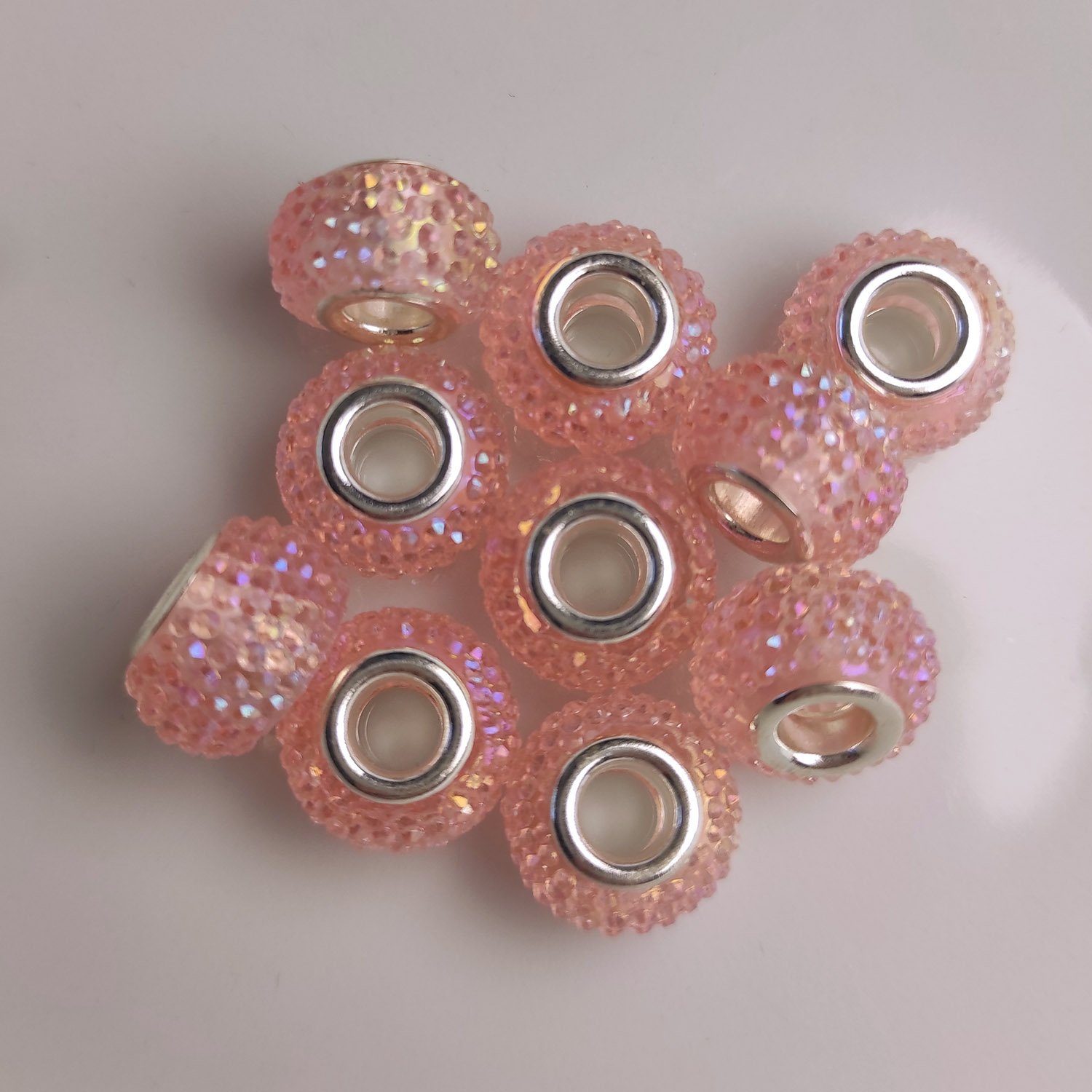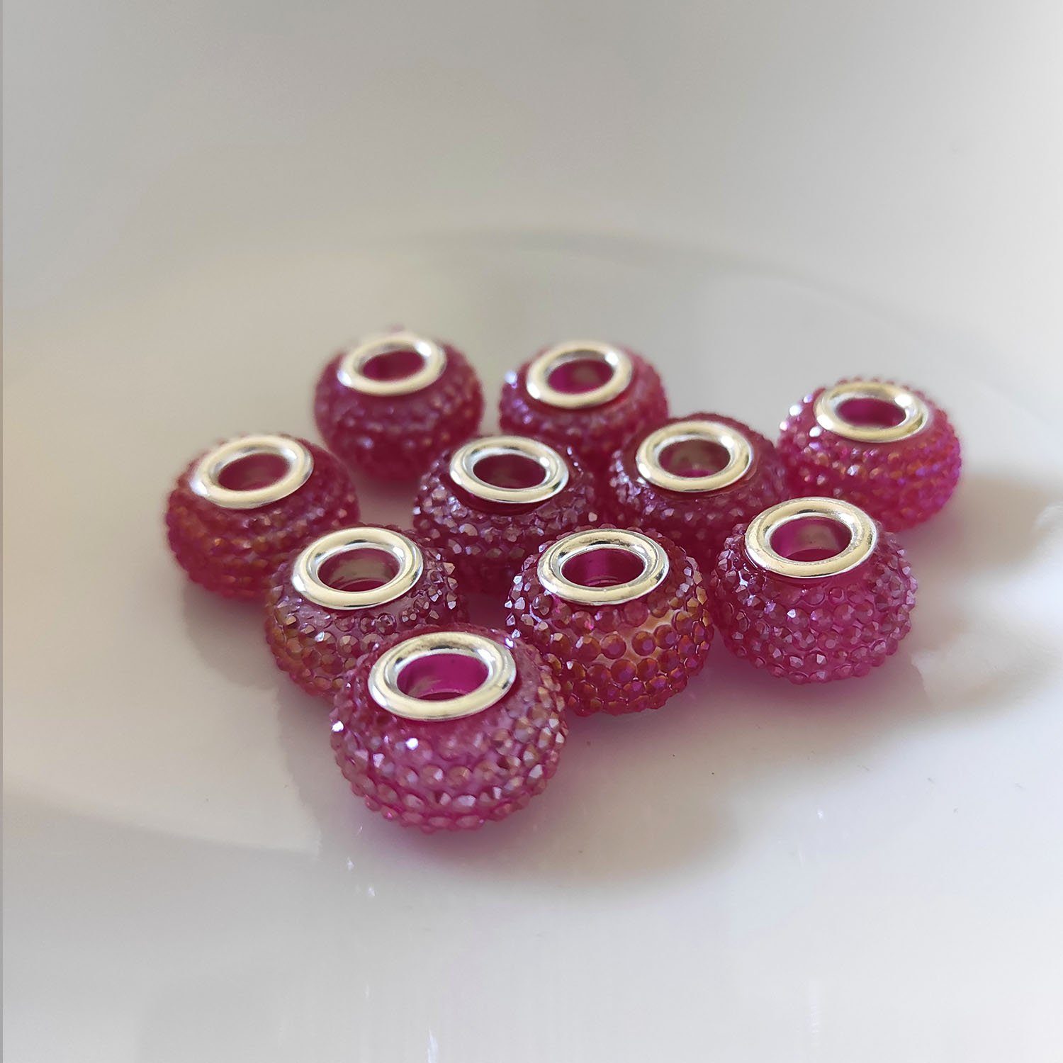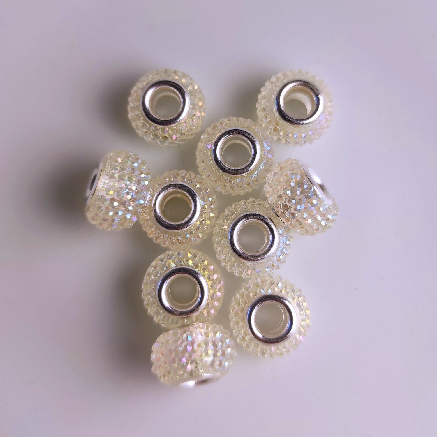 Glitzernde Großlochperlen, 14 mm, ideal für DIY-Schmuckprojekte. 10 Stück pro Einheit, perfekt für individuelle Kreationen.