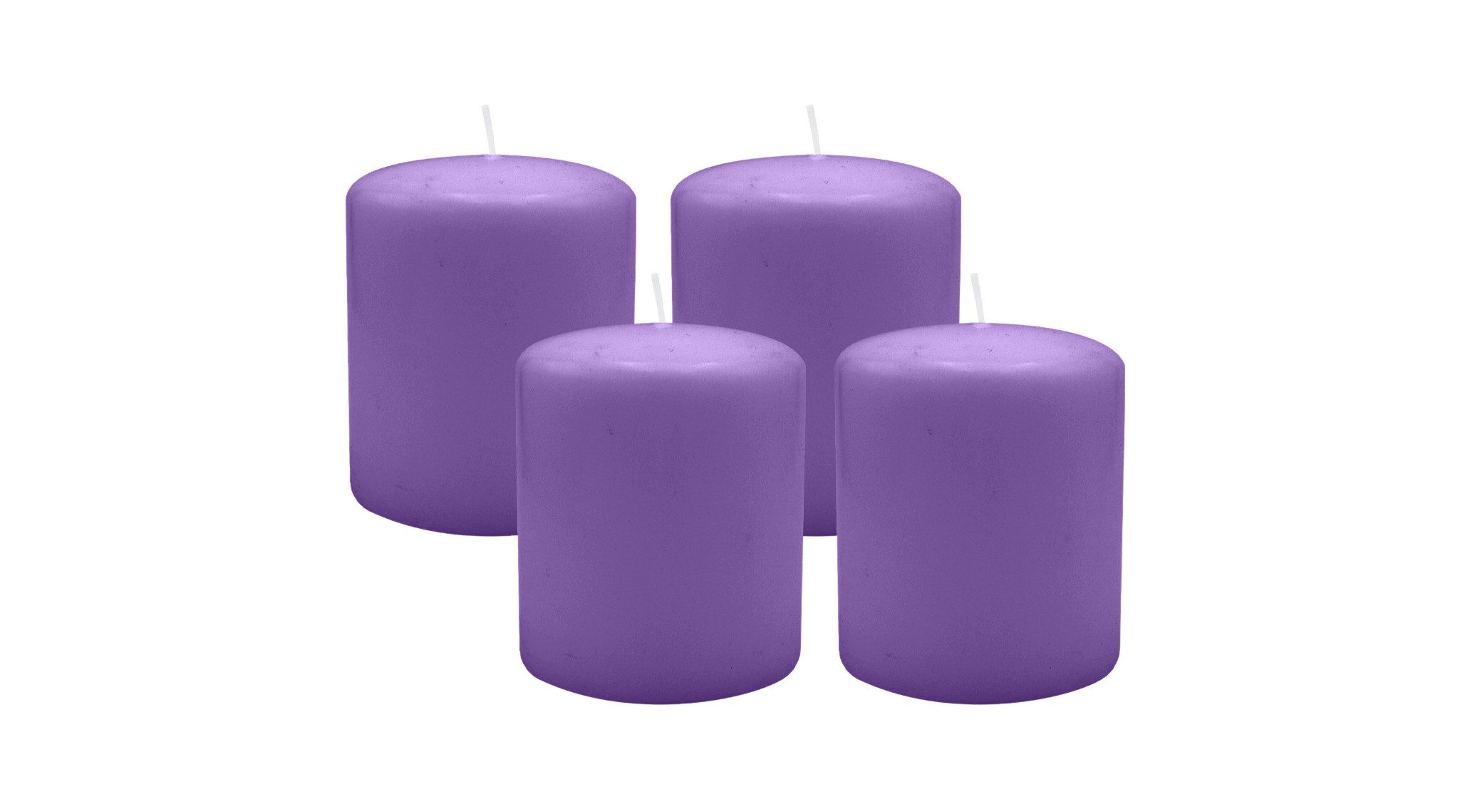 Adventskranzkerzen Lila Ø 100 x 120 mm, 4er Kerzen-Set. Hochwertige, getauchte Stumpenkerzen aus 100% Paraffin. RAL-zertifizierte Qualität.