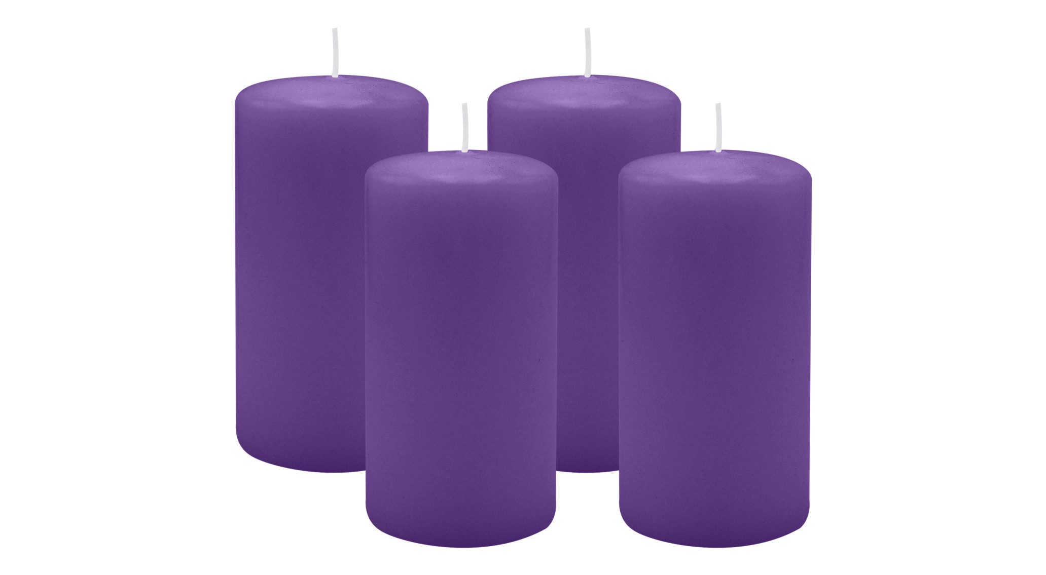 Adventskranzkerzen Lila Ø 60 x 100 mm, 4er Kerzen-Set. Hochwertige, getauchte Stumpenkerzen aus 100% Paraffin. RAL-zertifizierte Qualität.
