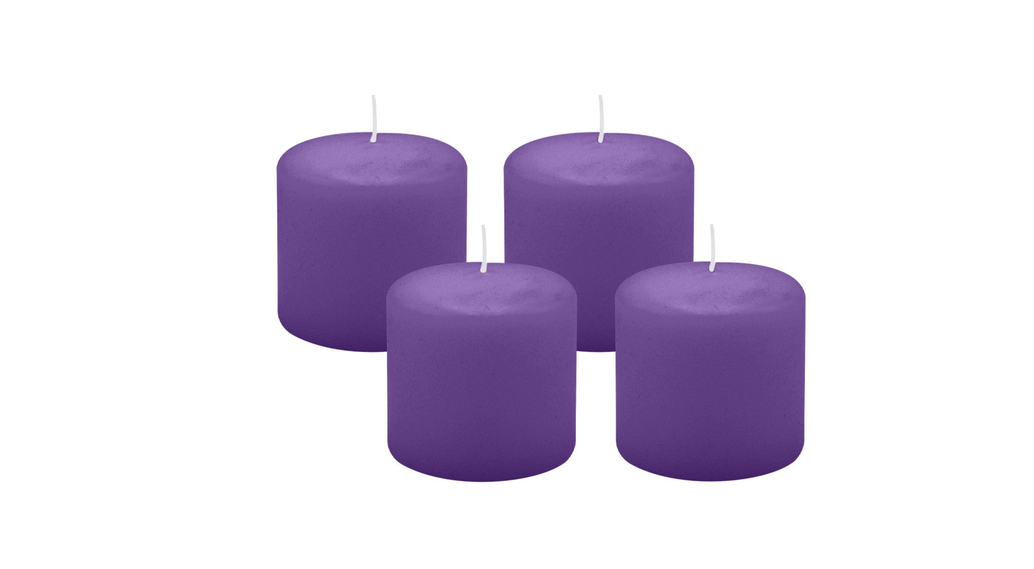 Adventskranzkerzen Lila Ø 60 x 60 mm, 4er Kerzen-Set. Hochwertige, getauchte Stumpenkerzen aus 100% Paraffin. RAL-zertifizierte Qualität.