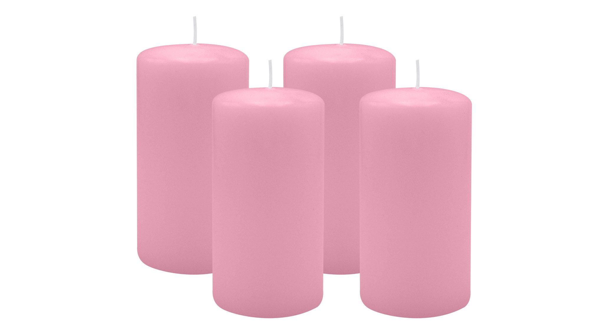 Adventskranzkerzen Rosa Ø 60 x 100 mm, 4er Kerzen-Set. Hochwertige, getauchte Stumpenkerzen aus 100% Paraffin. RAL-zertifizierte Qualität.