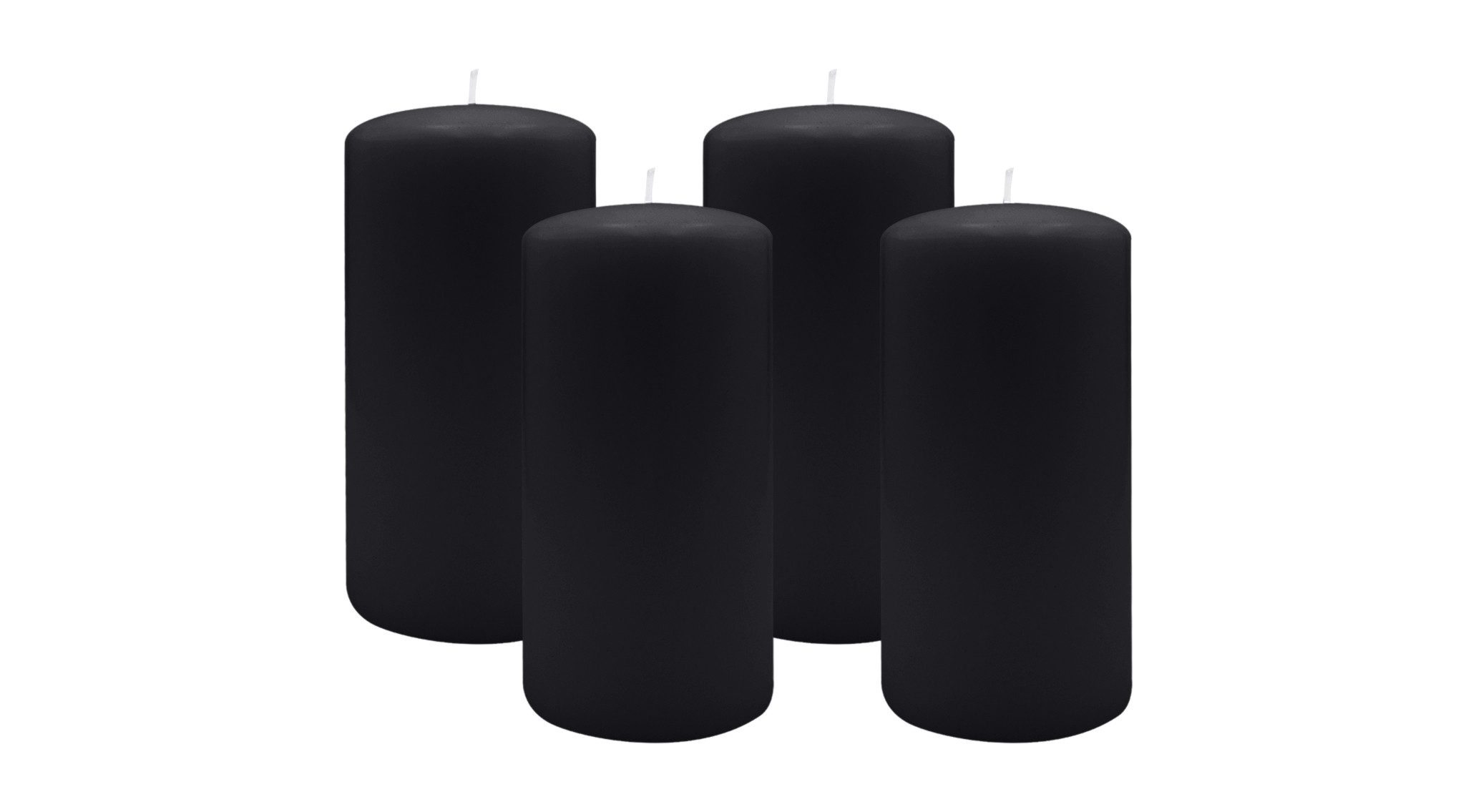 Adventskranzkerzen Schwarz Ø 100 x 200 mm, 4er Kerzen-Set. Hochwertige, getauchte Stumpenkerzen aus 100% Paraffin. RAL-zertifizierte Qualität.