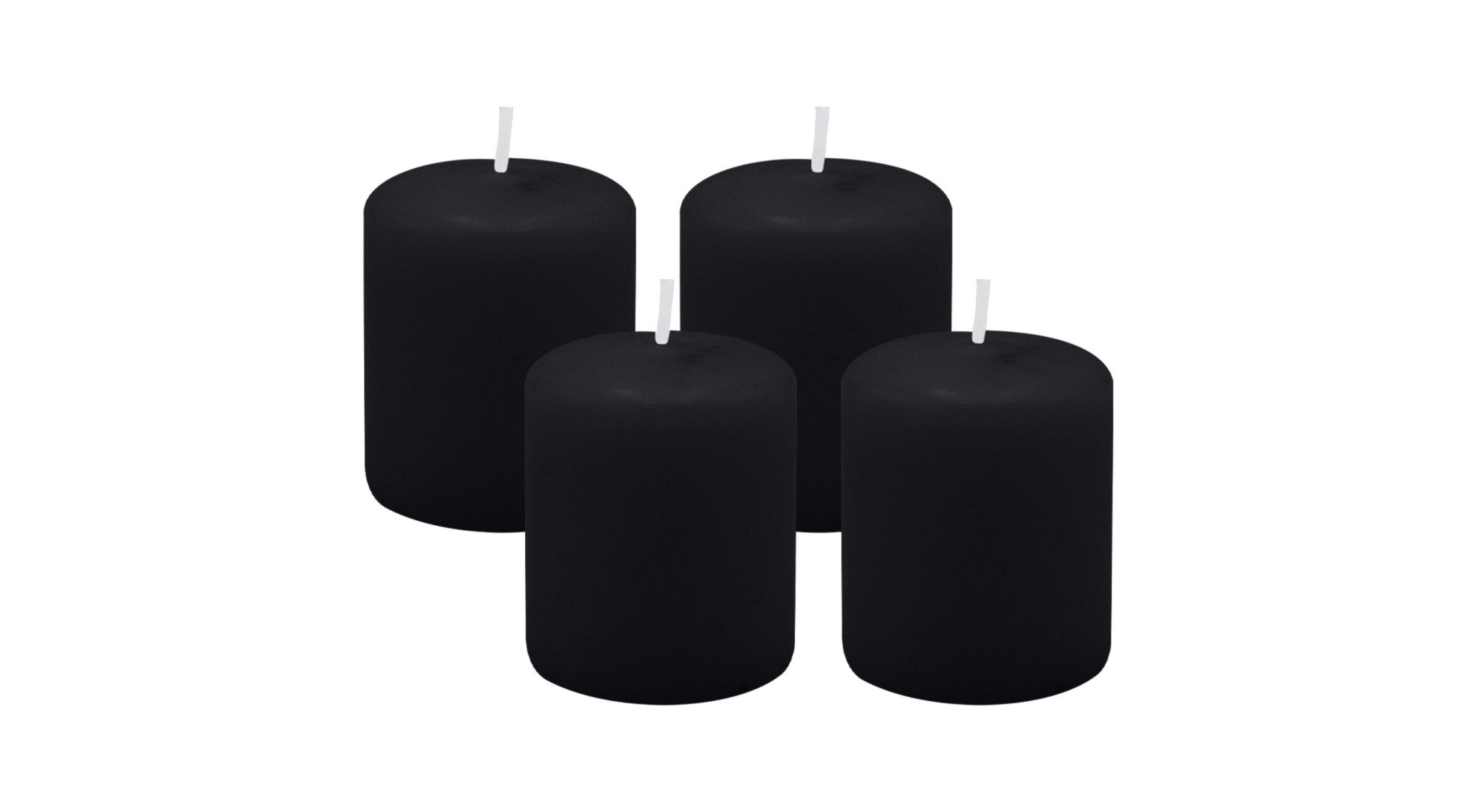 Adventskranzkerzen Schwarz Ø 50 x 60 mm, 4er Kerzen-Set. Hochwertige, getauchte Stumpenkerzen aus 100% Paraffin. RAL-zertifizierte Qualität.