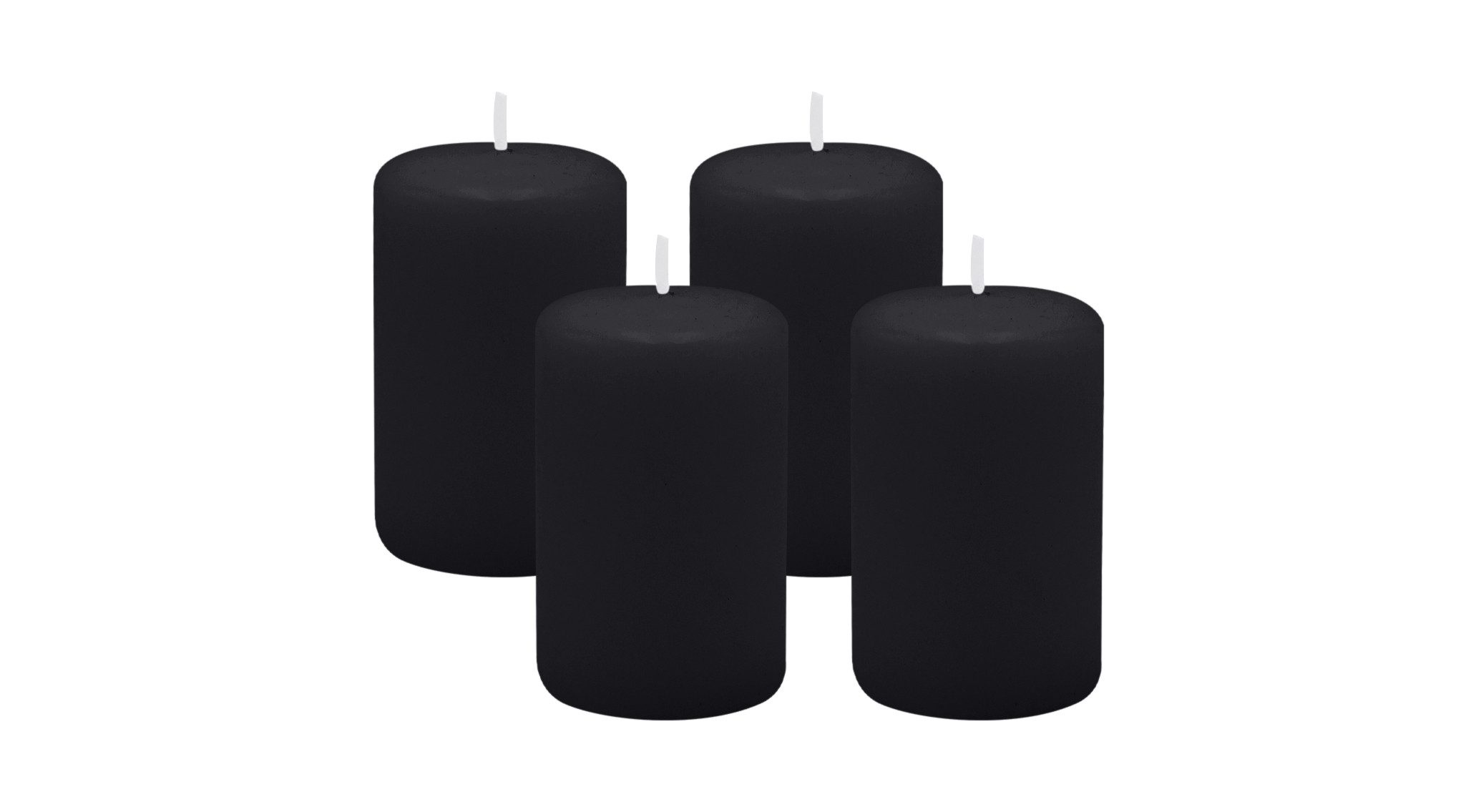 Adventskranzkerzen Schwarz Ø 50 x 80 mm, 4er Kerzen-Set. Hochwertige, getauchte Stumpenkerzen aus 100% Paraffin. RAL-zertifizierte Qualität.