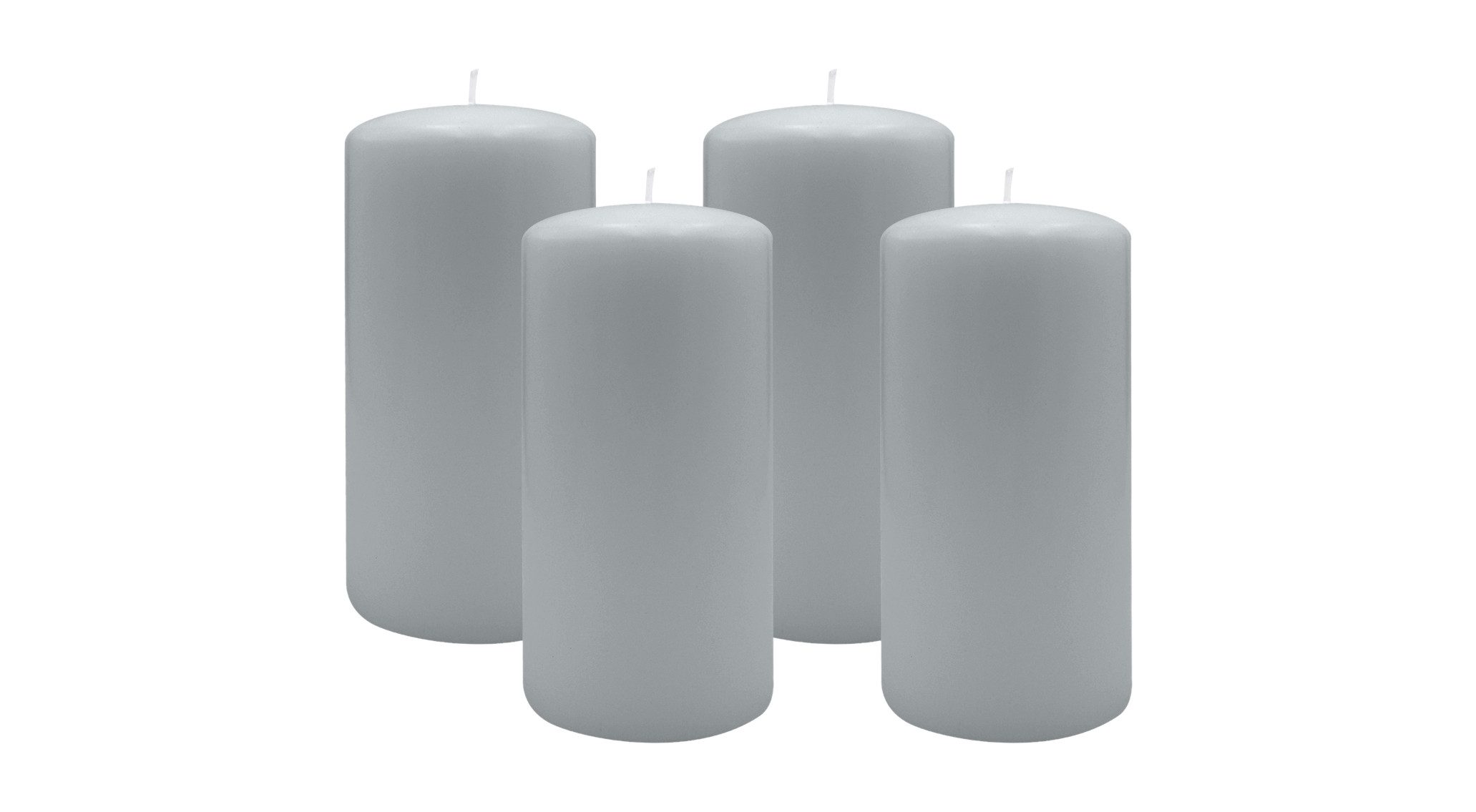 Adventskranzkerzen Silbergrau Ø 100 x 200 mm, 4er Kerzen-Set. Hochwertige, getauchte Stumpenkerzen aus 100% Paraffin. RAL-zertifizierte Qualität.
