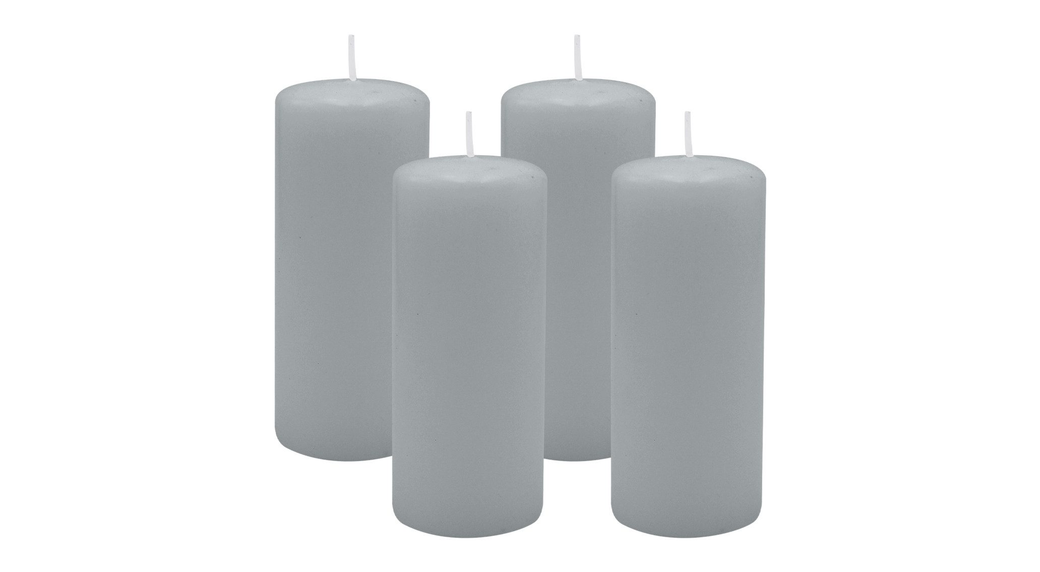 Adventskranzkerzen Silbergrau Ø 50 x 120 mm, 4er Kerzen-Set. Hochwertige, getauchte Stumpenkerzen aus 100% Paraffin. RAL-zertifizierte Qualität.