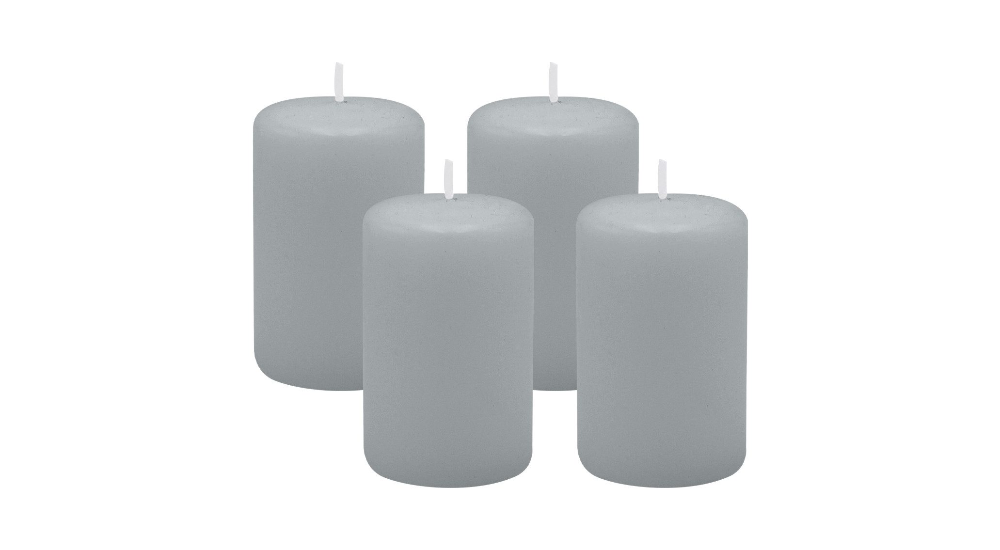 Adventskranzkerzen Silbergrau Ø 50 x 80 mm, 4er Kerzen-Set. Hochwertige, getauchte Stumpenkerzen aus 100% Paraffin. RAL-zertifizierte Qualität.
