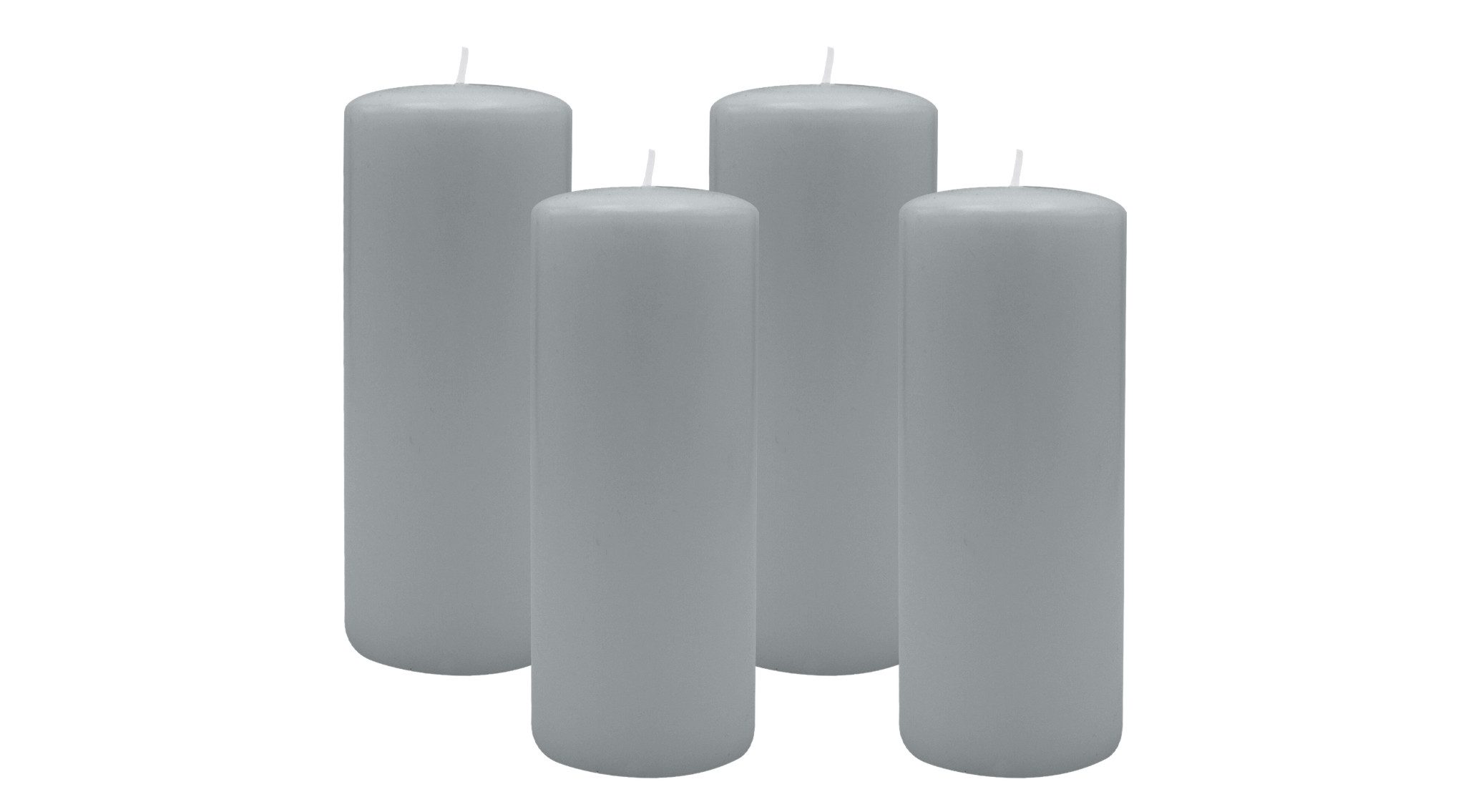Adventskranzkerzen Silbergrau Ø 80 x 200 mm, 4er Kerzen-Set. Hochwertige, getauchte Stumpenkerzen aus 100% Paraffin. RAL-zertifizierte Qualität.