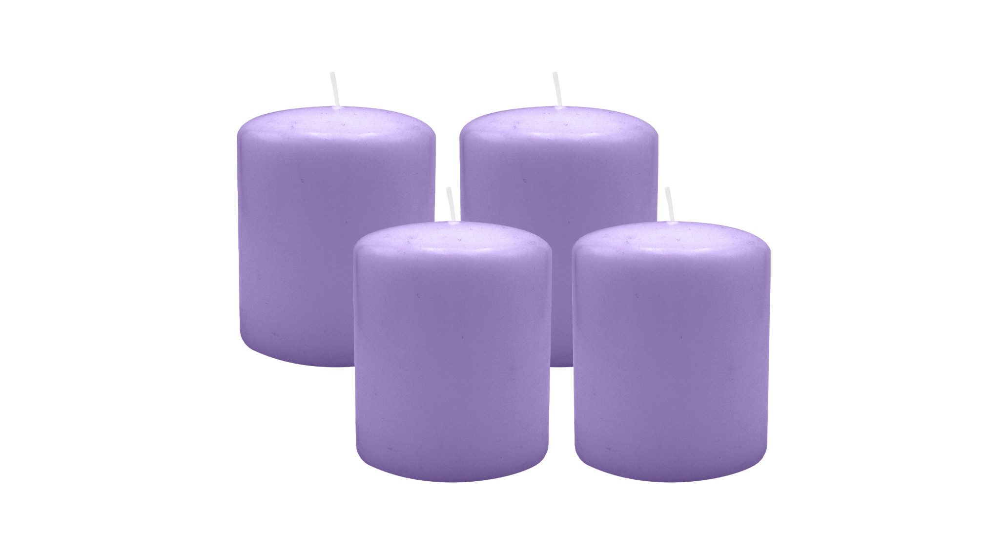 Adventskranzkerzen Veilchen Ø 100 x 120 mm, 4er Kerzen-Set. Hochwertige, getauchte Stumpenkerzen aus 100% Paraffin. RAL-zertifizierte Qualität.