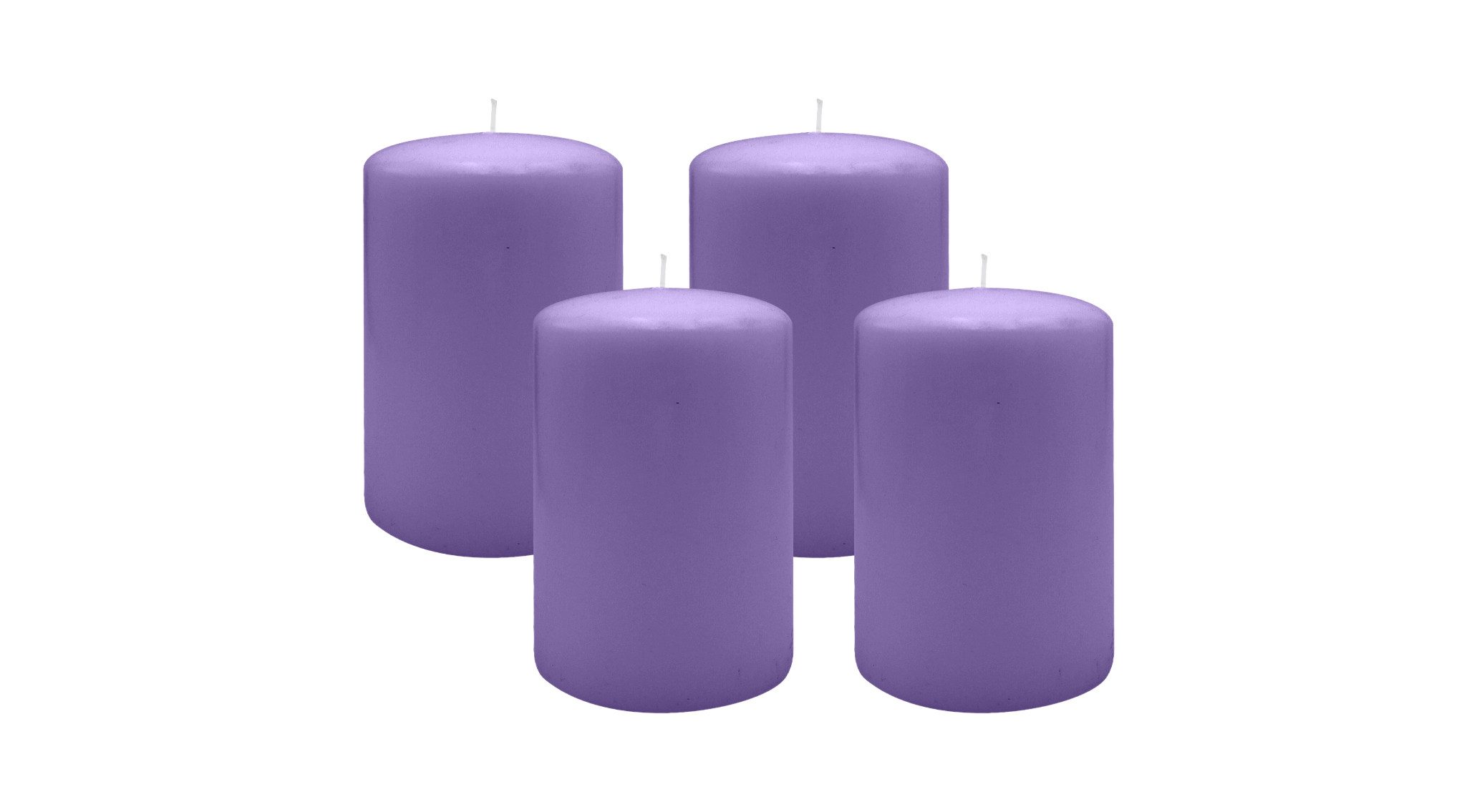 Adventskranzkerzen Veilchen Ø 100 x 150 mm, 4er Kerzen-Set. Hochwertige, getauchte Stumpenkerzen aus 100% Paraffin. RAL-zertifizierte Qualität.