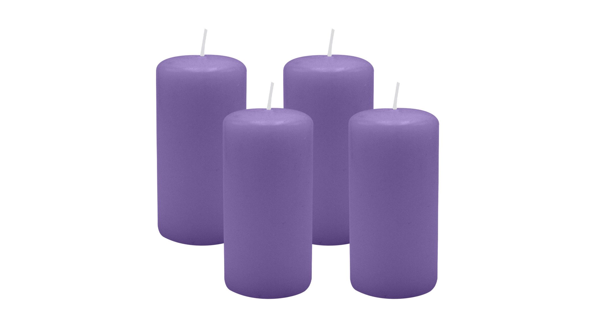 Adventskranzkerzen Veilchen Ø 50 x 100 mm, 4er Kerzen-Set. Hochwertige, getauchte Stumpenkerzen aus 100% Paraffin. RAL-zertifizierte Qualität.