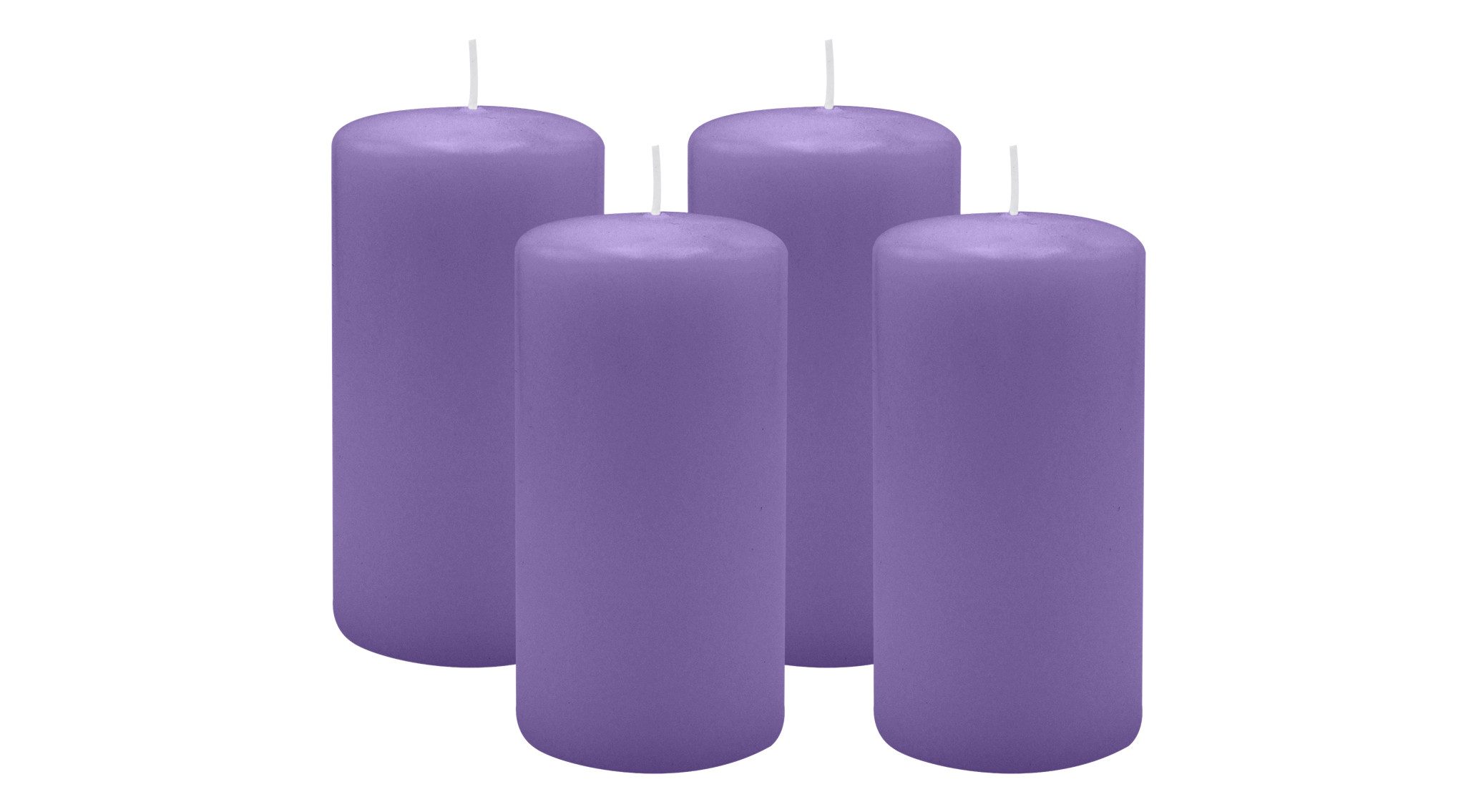 Adventskranzkerzen Veilchen Ø 60 x 100 mm, 4er Kerzen-Set. Hochwertige, getauchte Stumpenkerzen aus 100% Paraffin. RAL-zertifizierte Qualität.