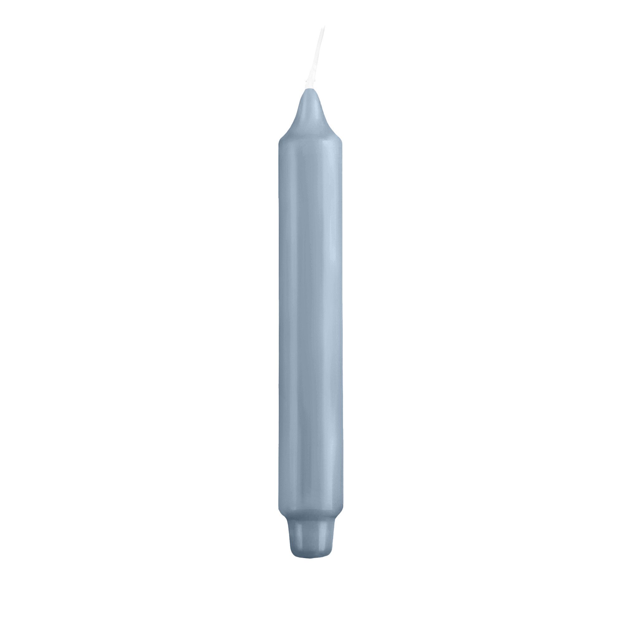 Stabkerzen mit Zapfenfuß Jeans Blau 300 x Ø 30 mm, 6 Stück. In Farbe getauchte Stabkerzen mit Zapfenfuß in bester RAL Kerzenqualität. Hergestellt von Kopschitz Kerzen in Deutschland. Aufgrund der konischen Form des Kerzenfußes kann die Kerze in Leuchtern unterschiedlicher Размер eingesetzt werden.
